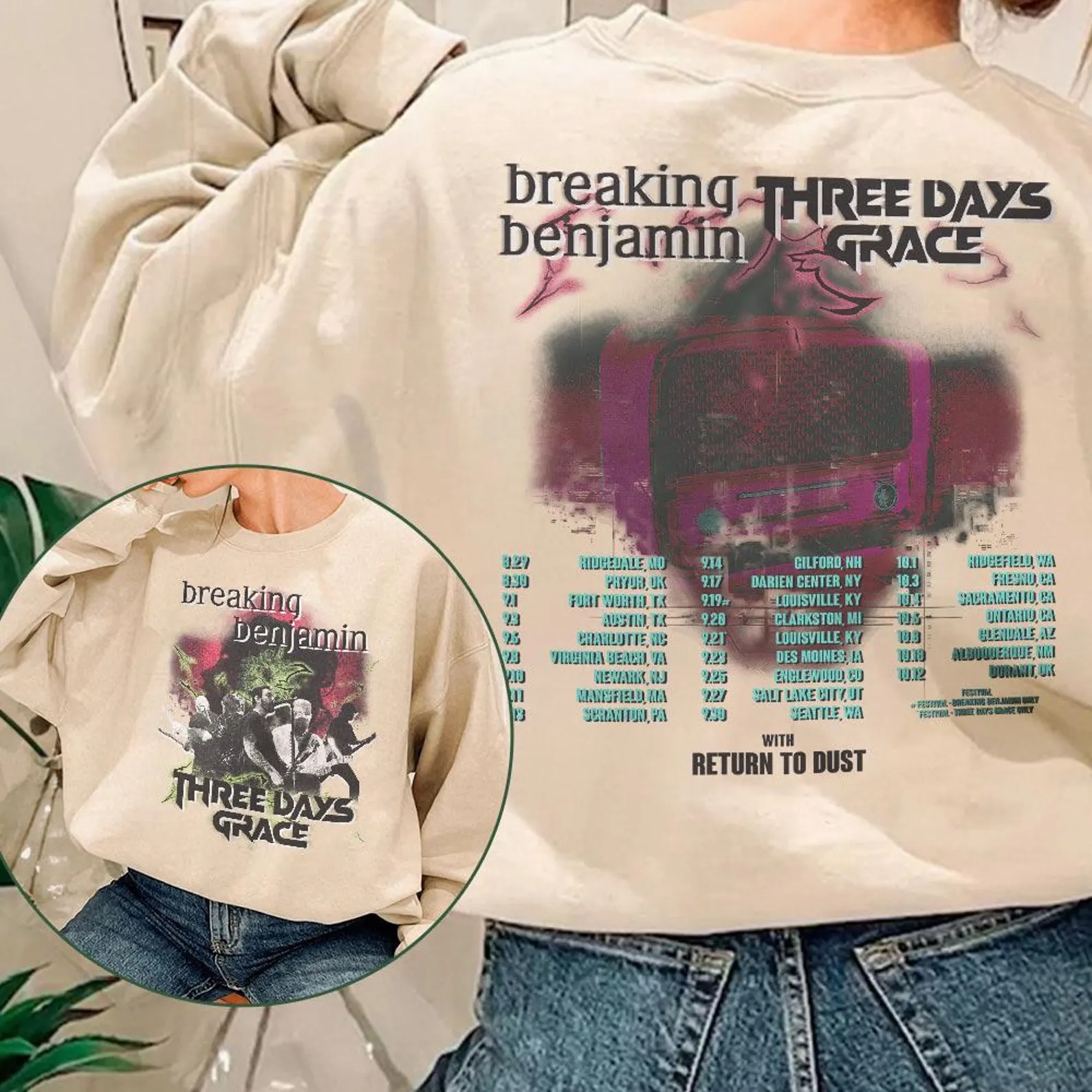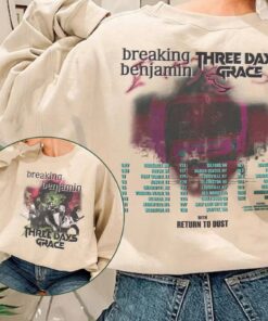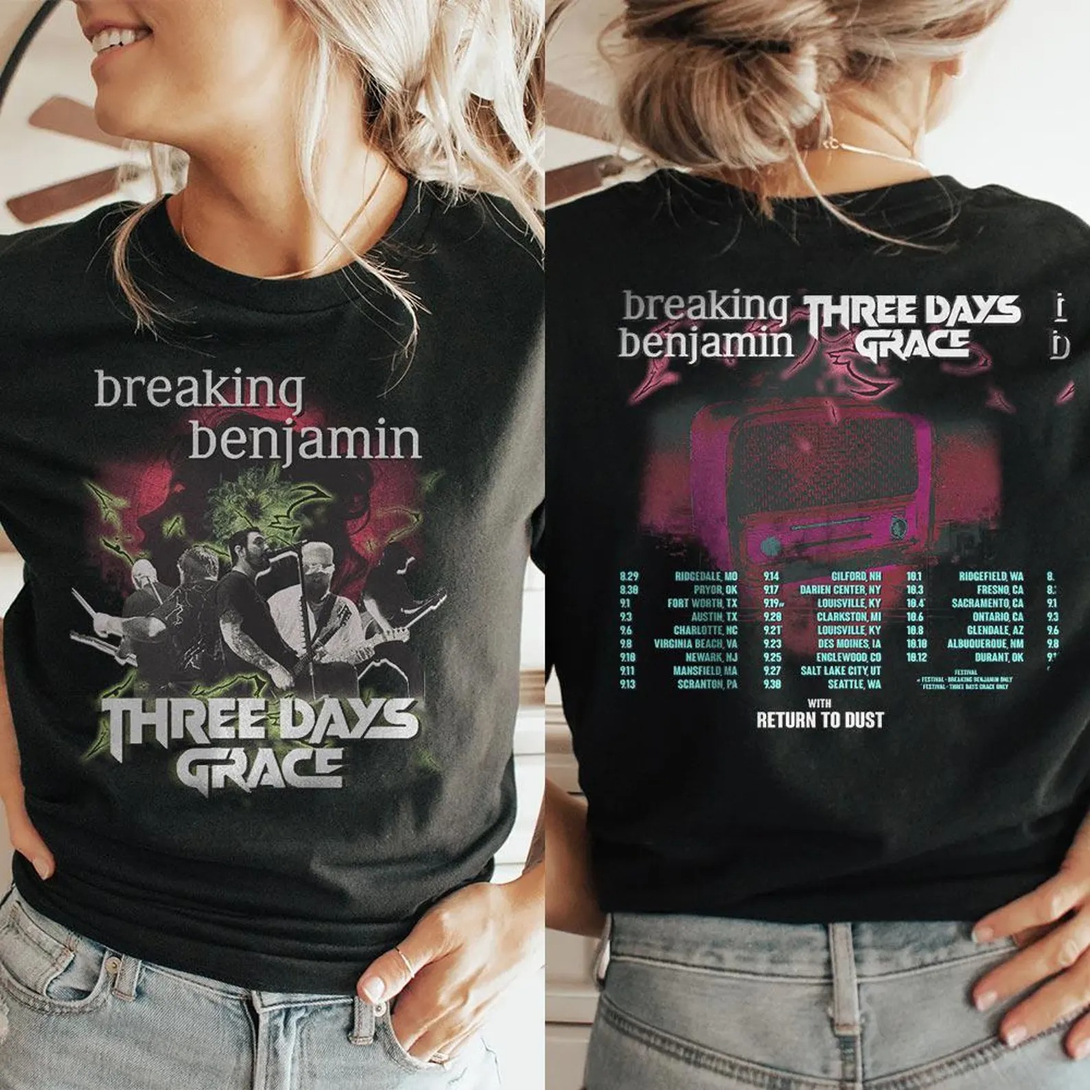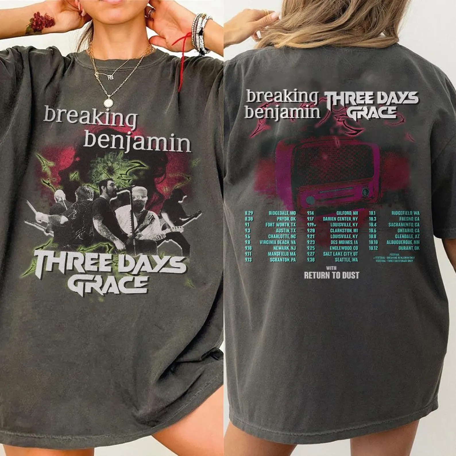 2 Sides Breaking Benjamin Three Days Grace Shirt, Tour Dates Tee with Return to Dust, Sport Grey Concert T‑Shirt
