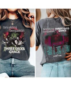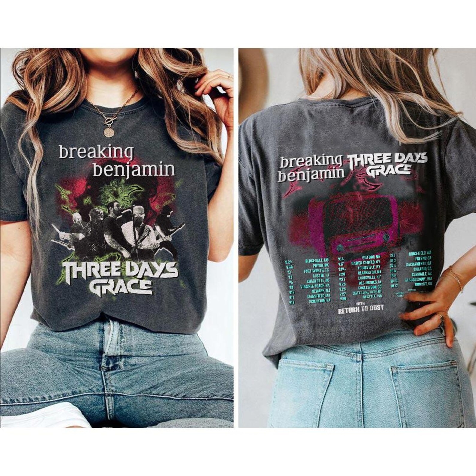 2 Sides Breaking Benjamin Three Days Grace Shirt, Tour Dates Tee with Return to Dust, Sport Grey Concert T‑Shirt