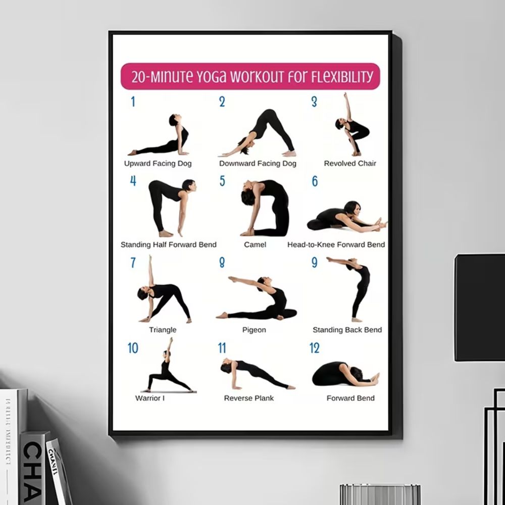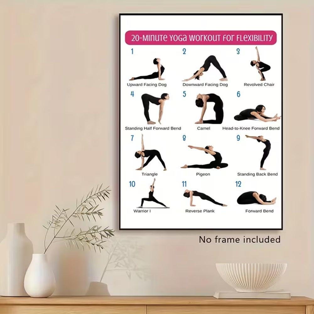20 Minute Yoga Workout Poster 12 Poses Wall Art Print Home Gym Fitness Decor