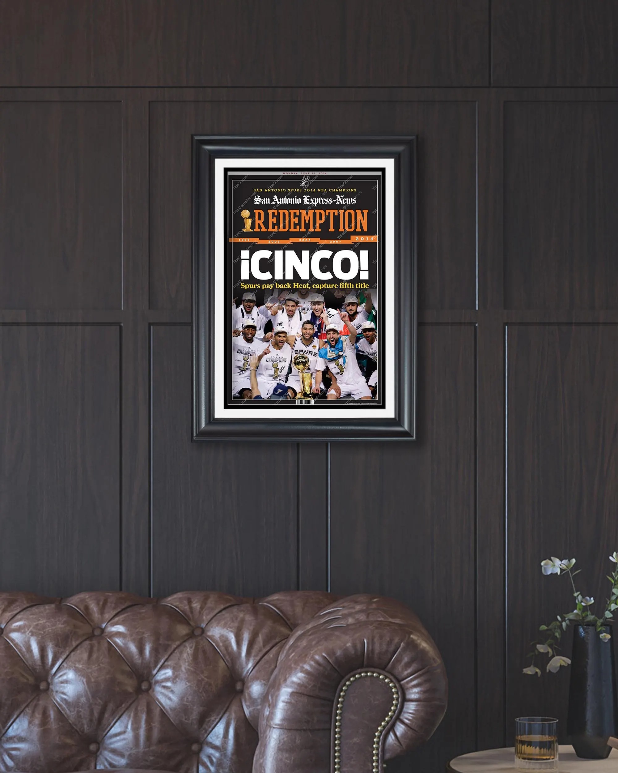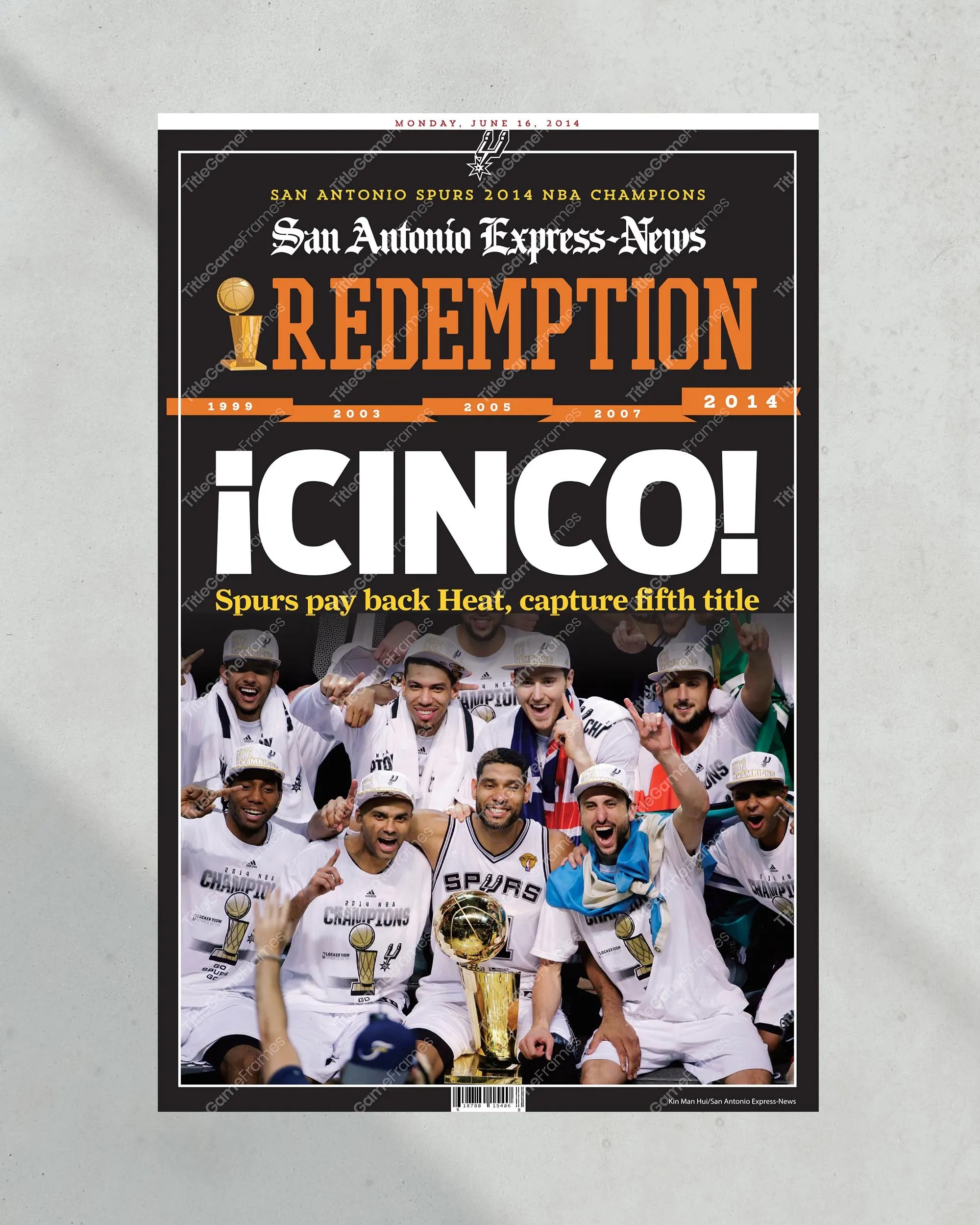 2014 San Antonio Spurs NBA Champions Framed Front Page Newspaper Print