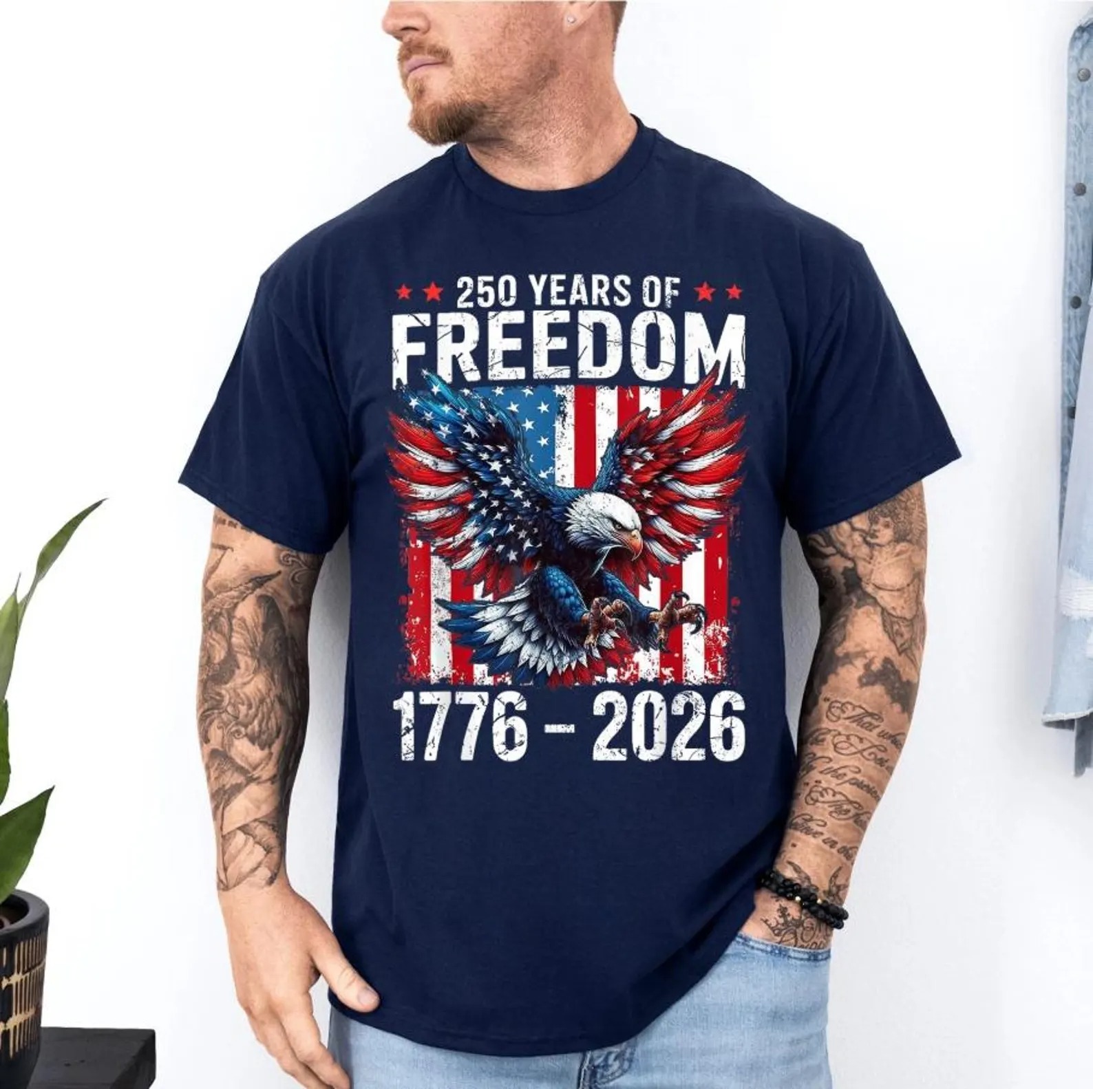 250 Years of Freedom 1776 2026 Patriotic Bald Eagle USA Flag Unisex T-Shirt