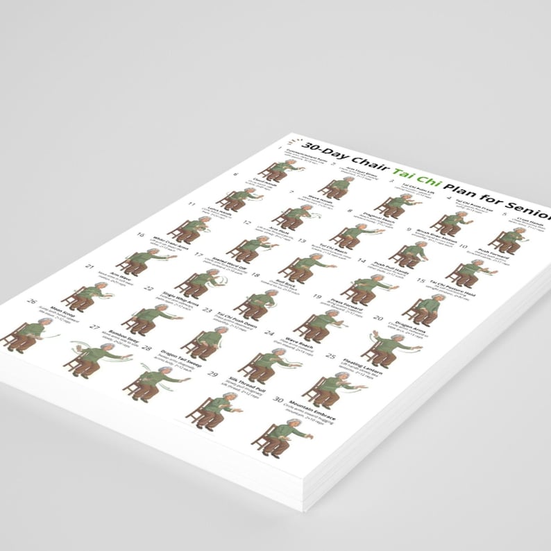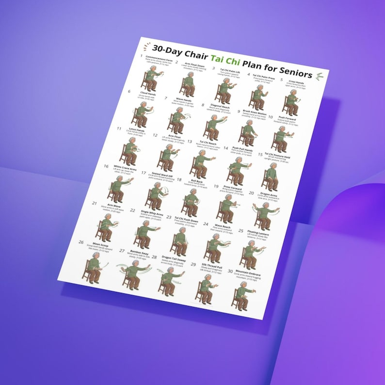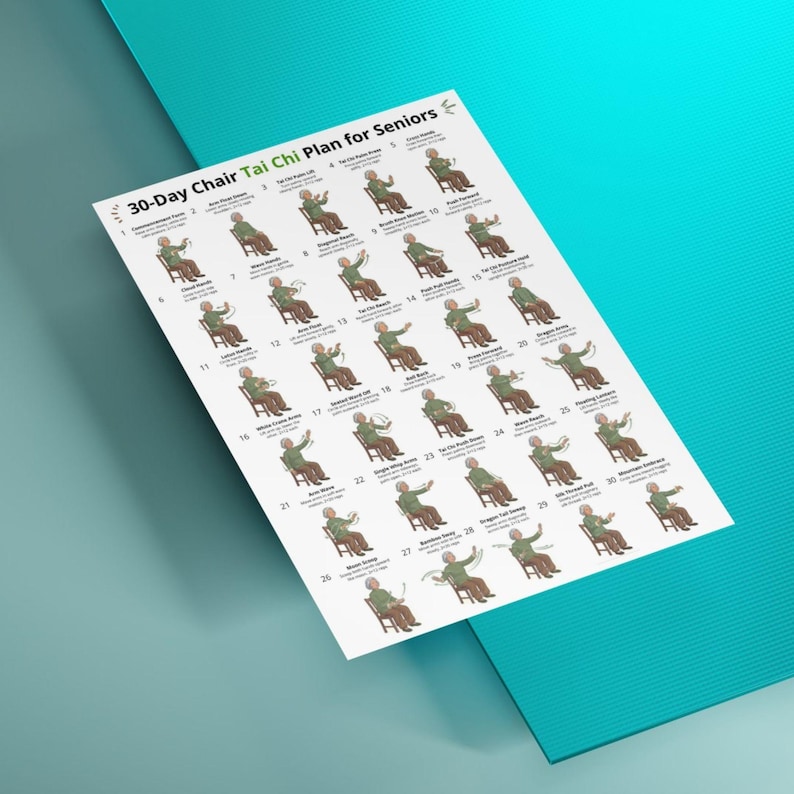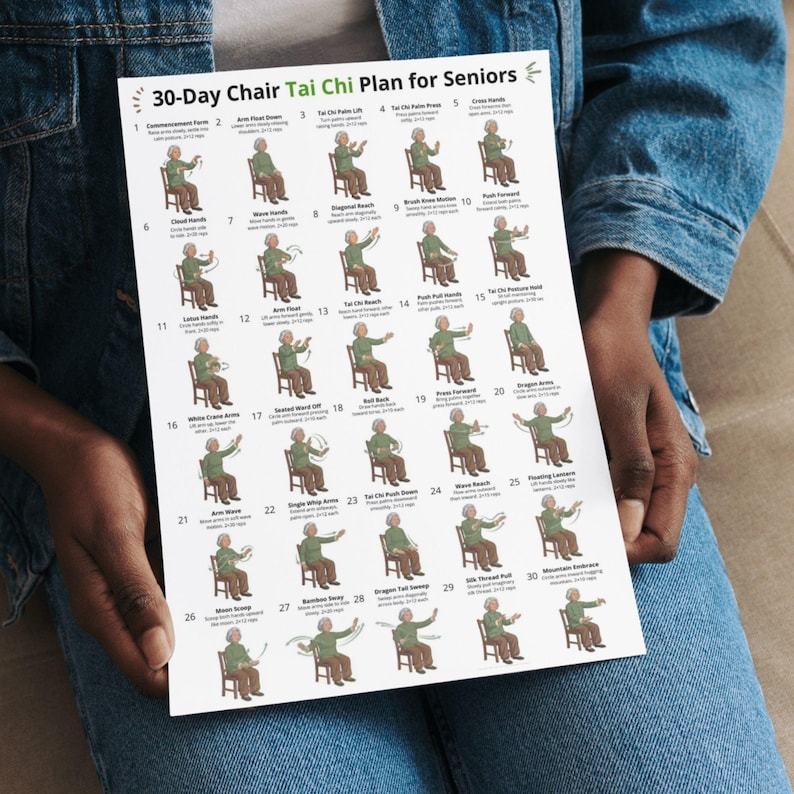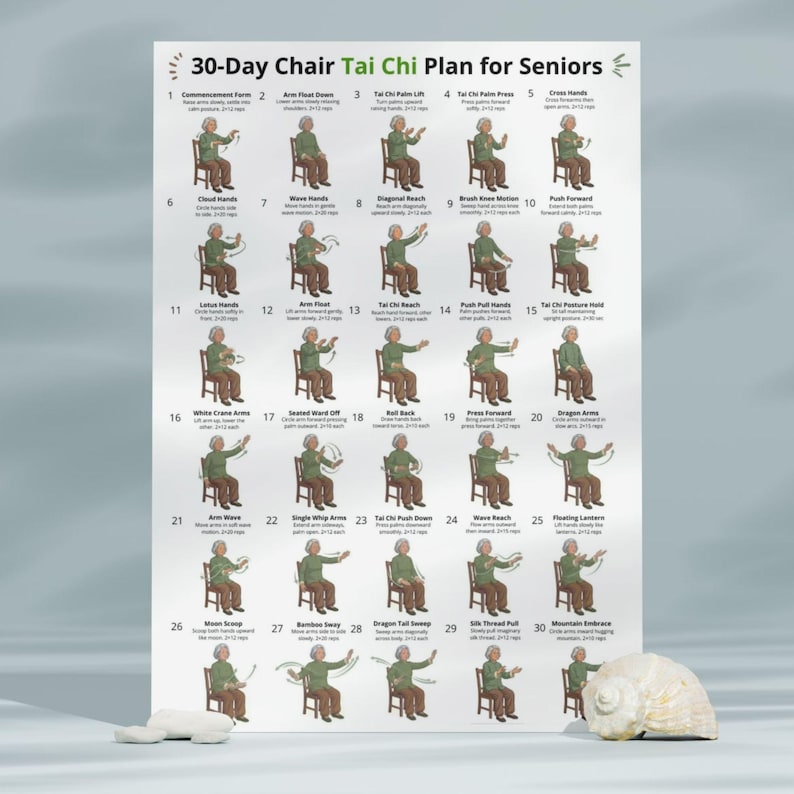 30 Day Chair Tai Chi Plan for Seniors, Seated Daily Exercise Chart, Gentle Workout Challenge Wall Art