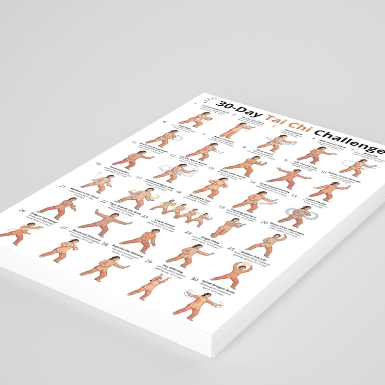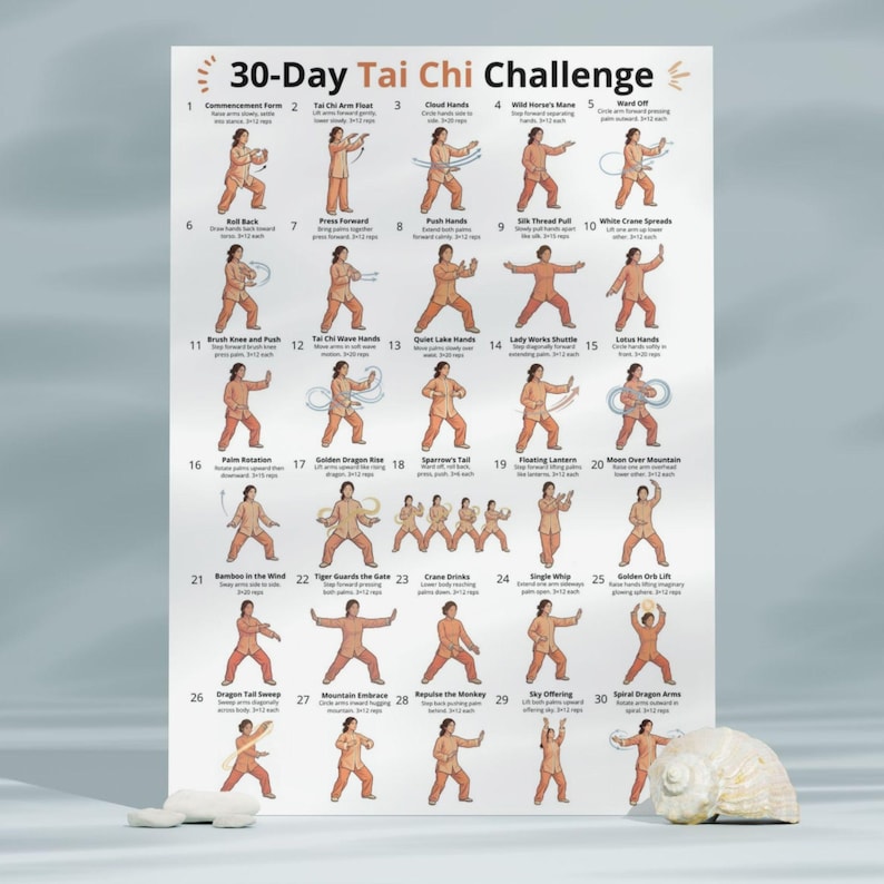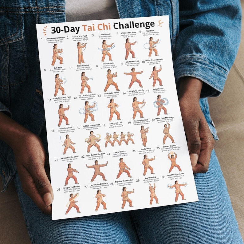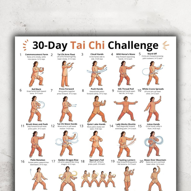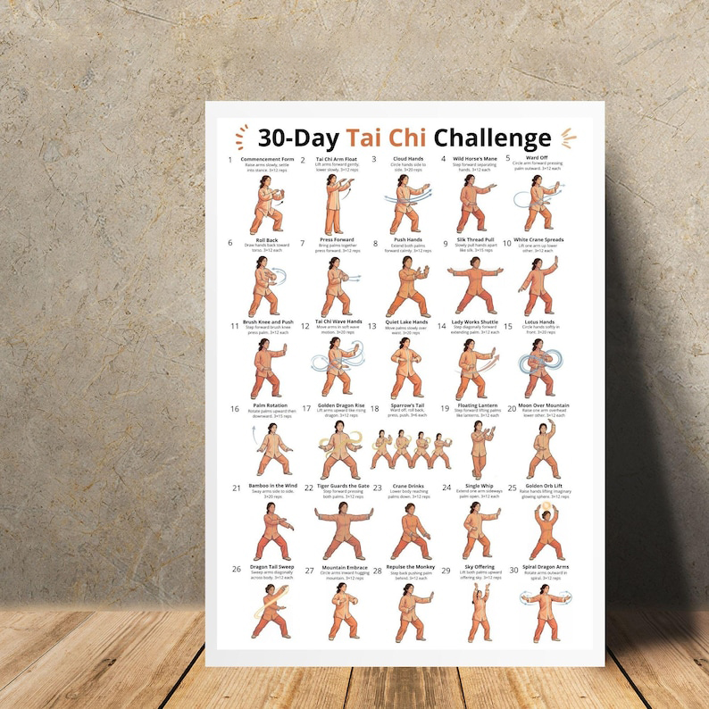 30 Day Tai Chi Challenge Poster, Daily Exercise Plan, Balance & Mobility Art