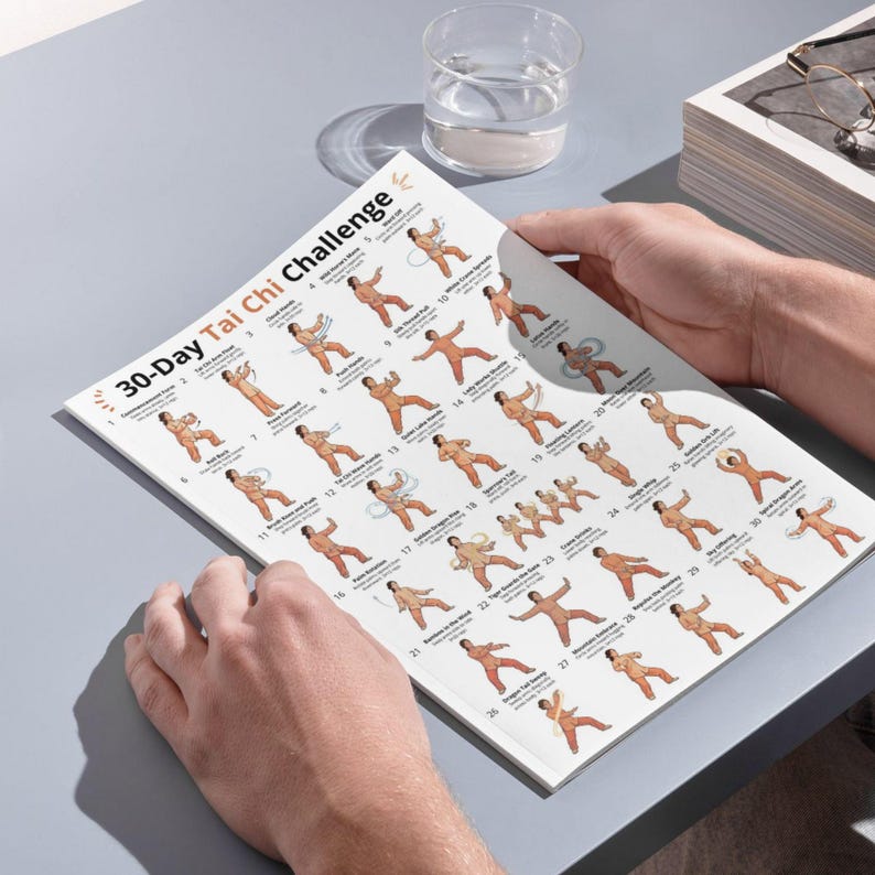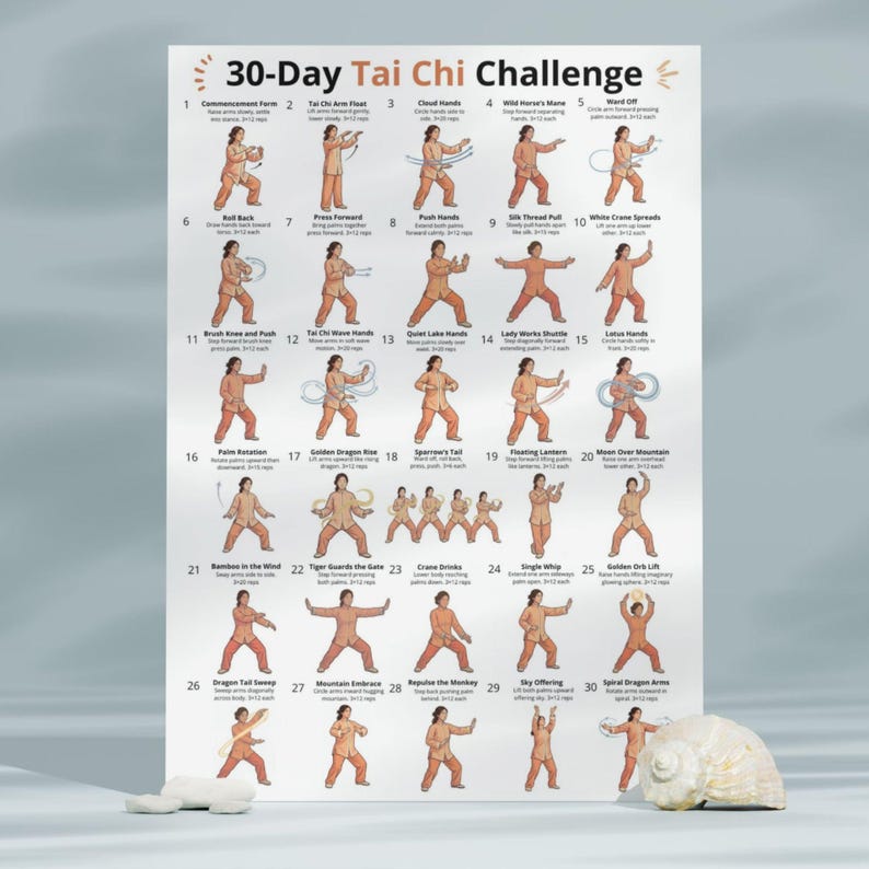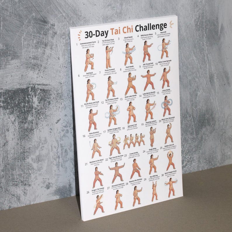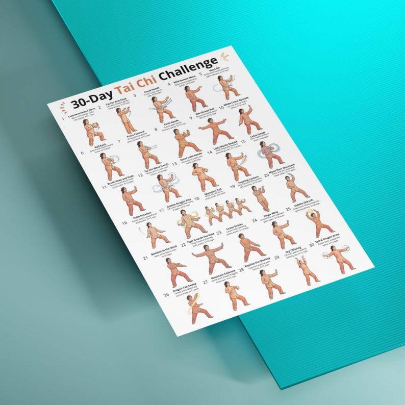 30 Day Tai Chi Challenge Poster, Daily Exercise Plan Wall Art, Full Body Workout Chart