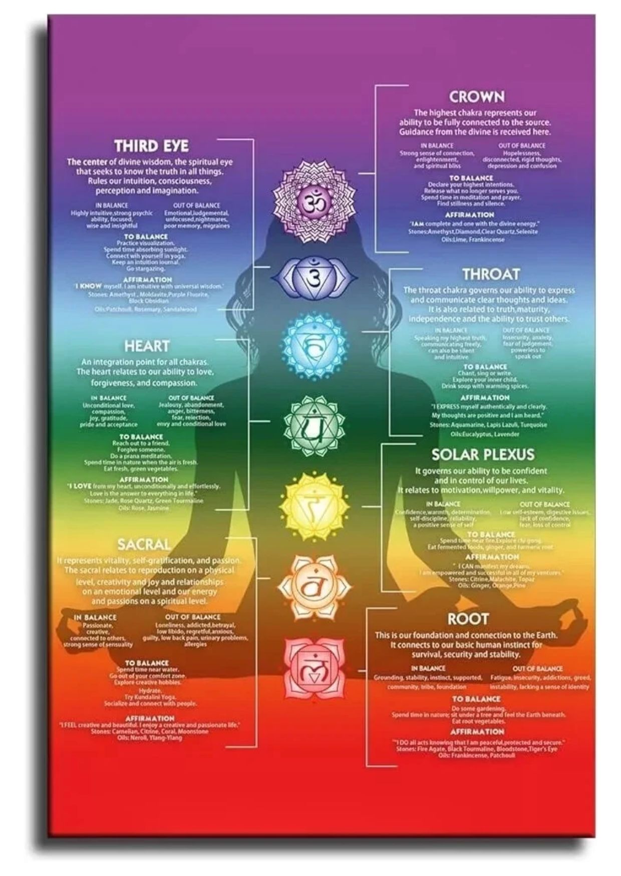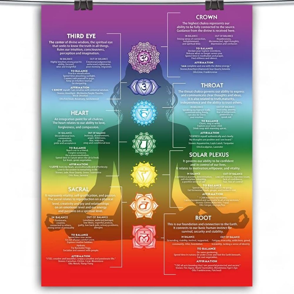 7 Chakra Chart Poster Yoga Spiritual Wall Art Crystal Reiki Healing Zen Decor