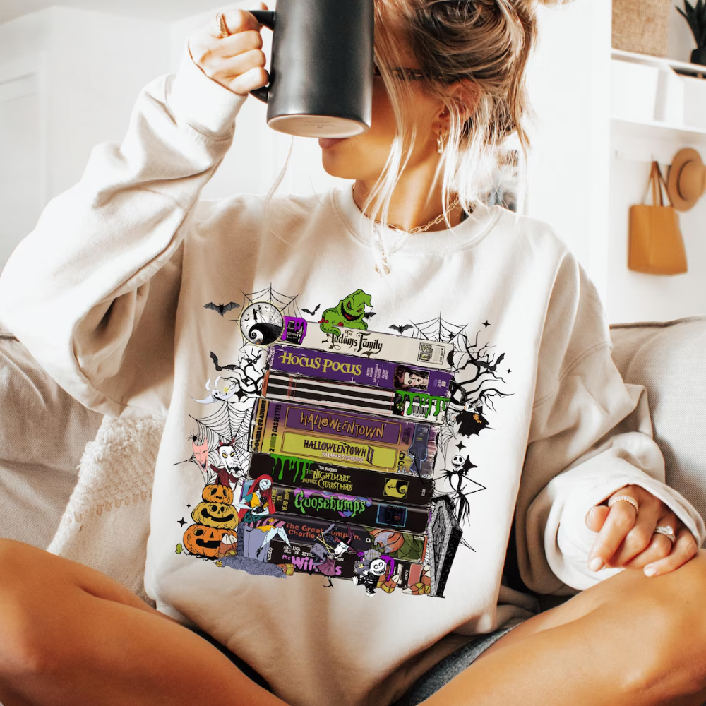 90s Vintage HalloweenSweatshirt, Retro VHS Horror T-Shirt, Funny Halloween Characters Crewneck, Spooky Movie Shirt