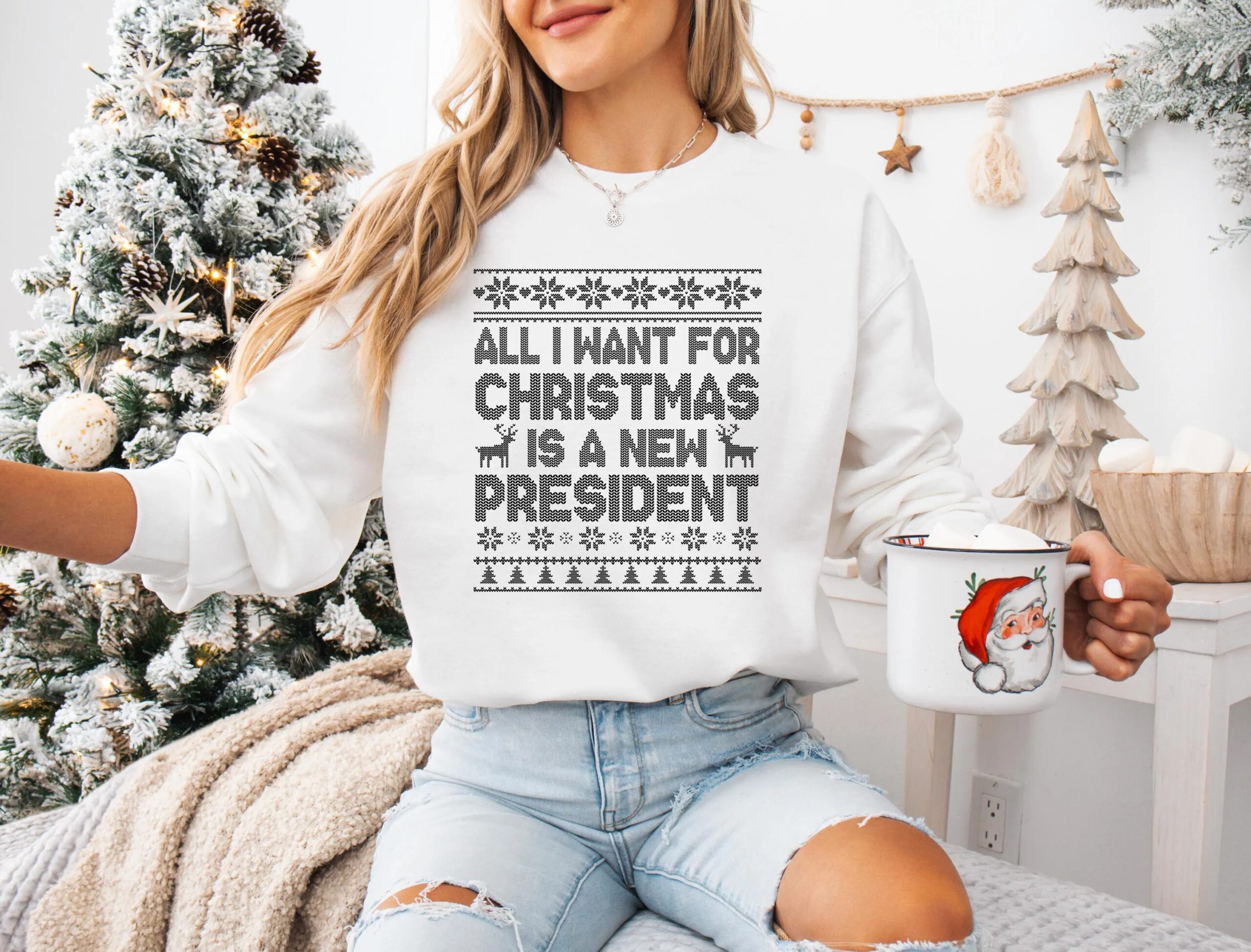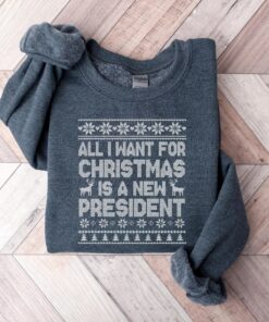 All I Want for Christmas Is A New President Sweatshirt, Subtle FDT T-Shirt, Holiday Sweater, Sarcastic Christmas Ugly Pattern Hoodie