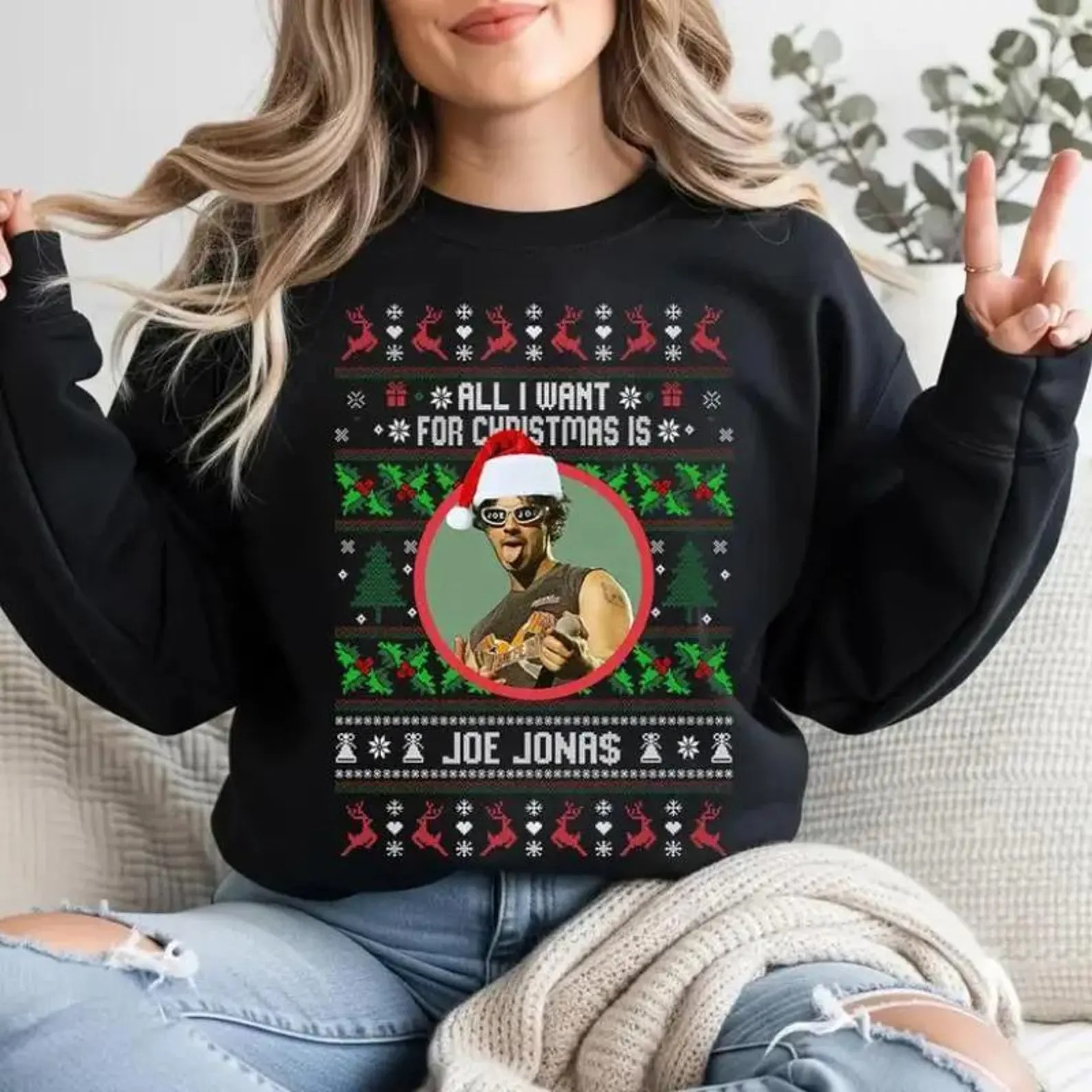 All I Want for Christmas Is Jonas Bros Sweatshirt, Joejonas Tee, Living the Dream Tour 2025, Holiday Shirt, Pop Singer Christmas Hoodie