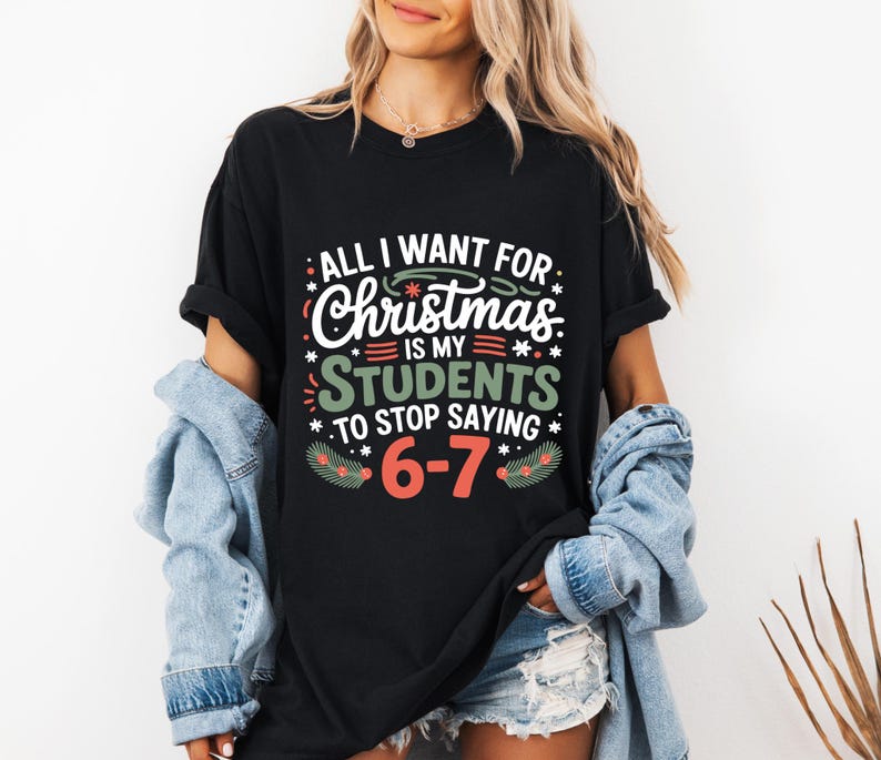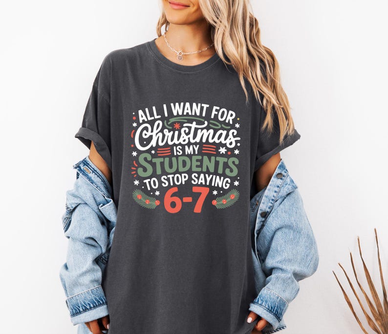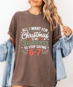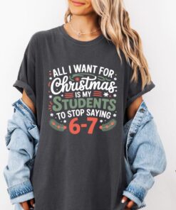 All I Want for Christmas Is My Students to Stop Saying 6-7 Shirt, Funny Teacher Holiday Tee, Christmas Classroom Humor Gift