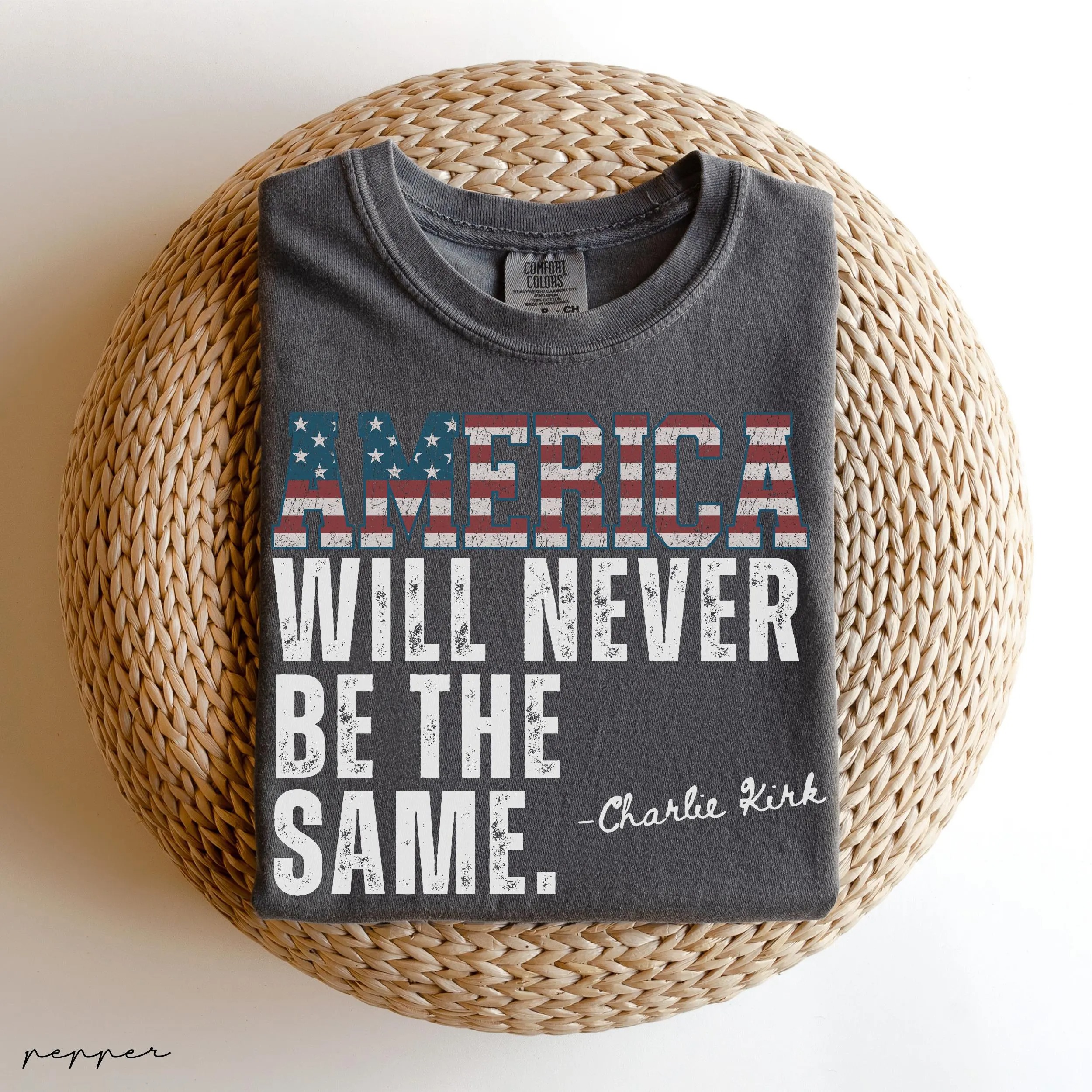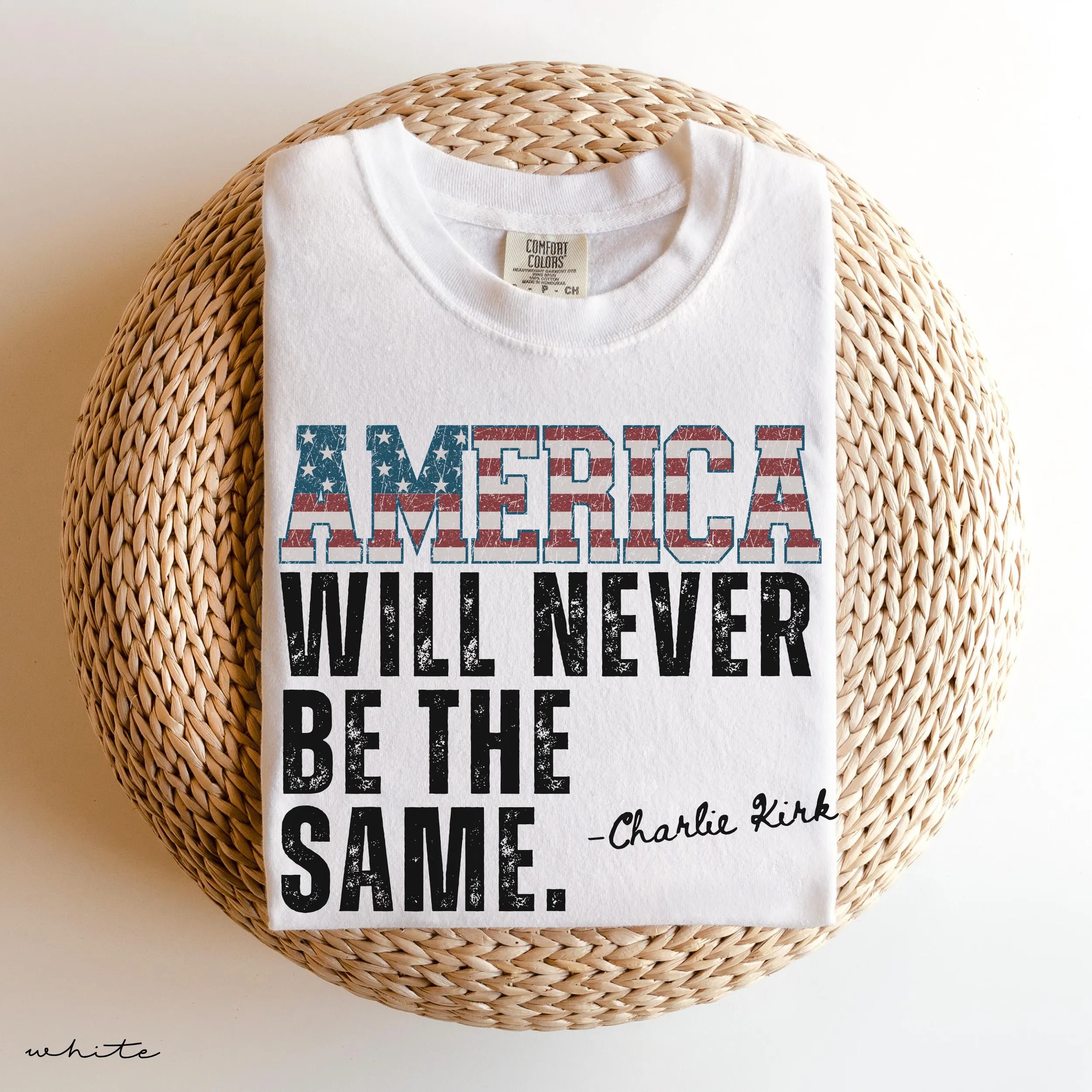 America Will Never Be The Same T-Shirt, Charlie Kirk Quote Shirt, Pray Charlie Tee, Charlie Support Top