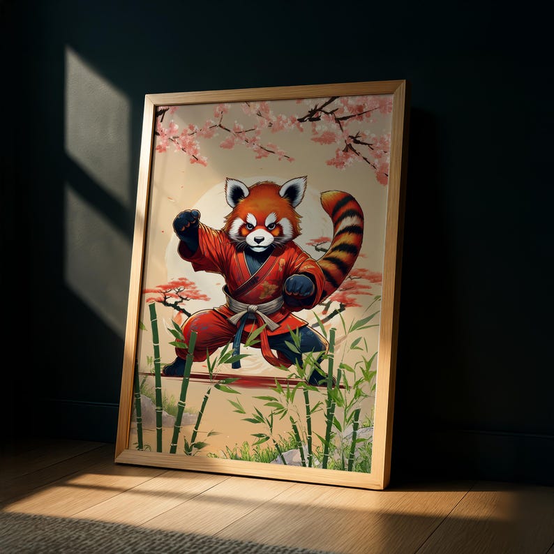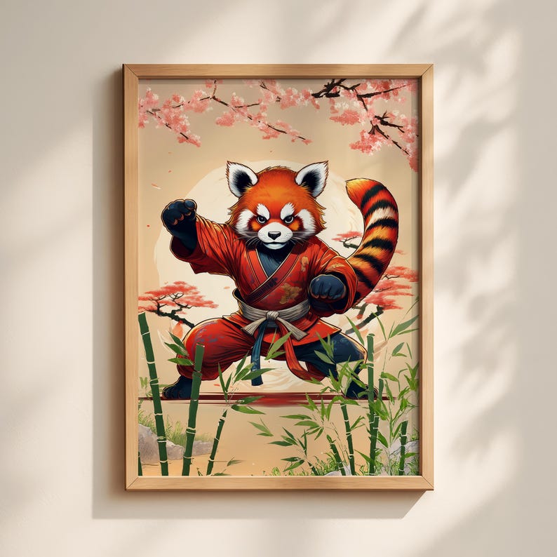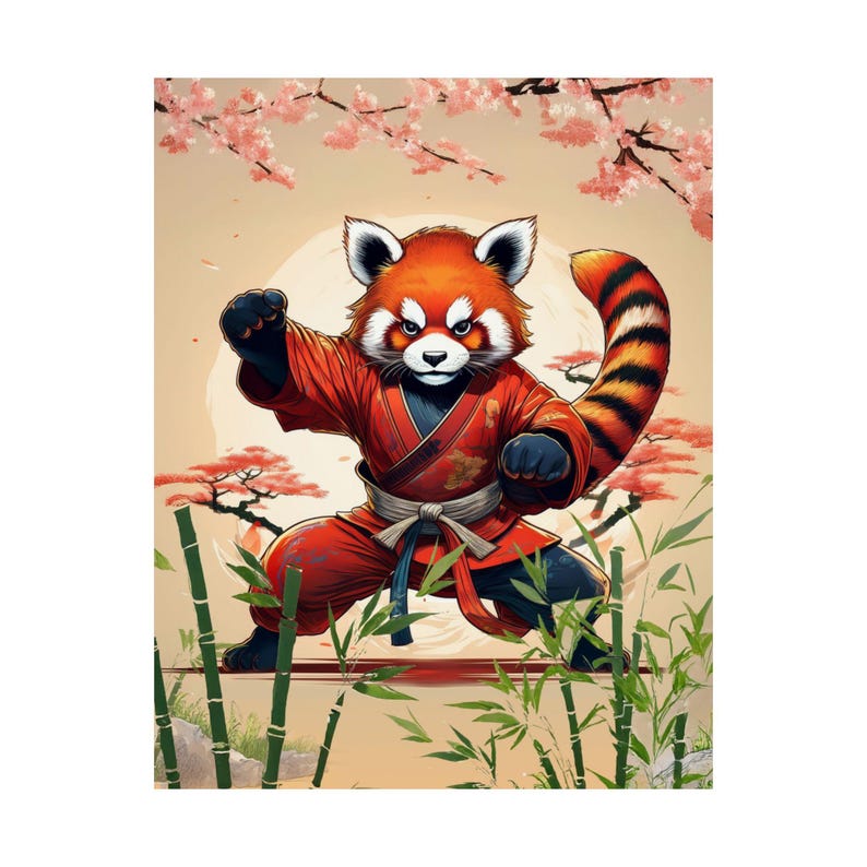 Anime Poster Red Panda Martial Arts Japanese Style Ninja Wall Art Kid Room, Manga Gift, Anime Decor