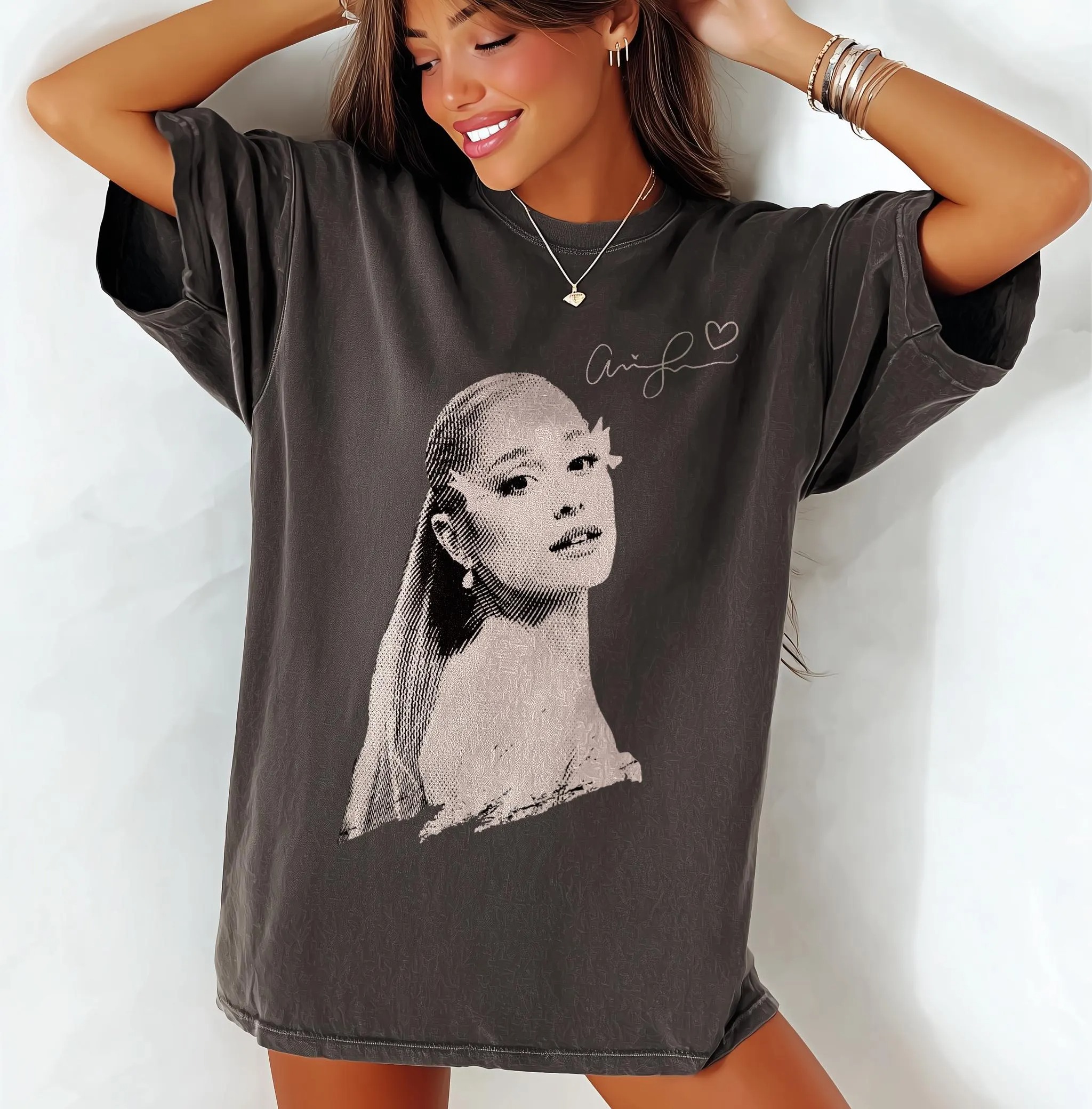 Ariana Grande Vintage Signature Shirt, Eternal Era Pop Portrait Graphic Tee, Retro Fan Merch Oversized Music Top