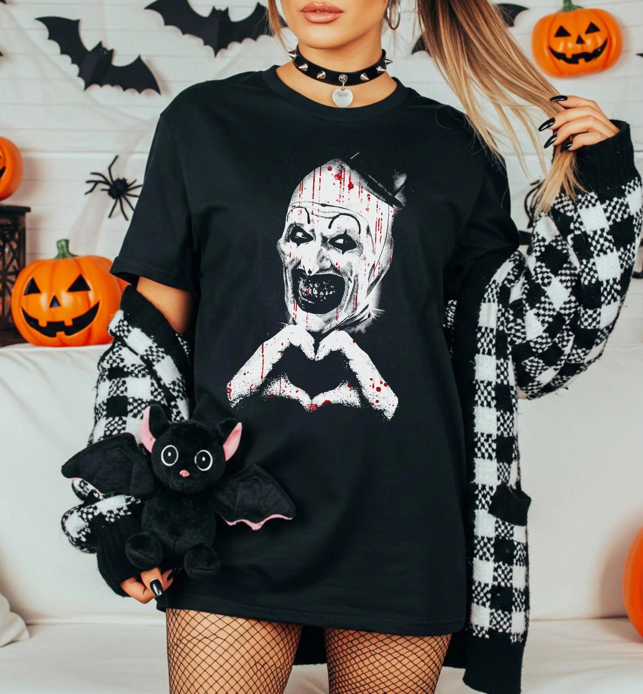 Art The Clown Terrifier T-Shirt, Scary Horror Clown Shirt, Creepy Heart Hands Tee, Spooky Slasher Fan, Halloween Horror Movie