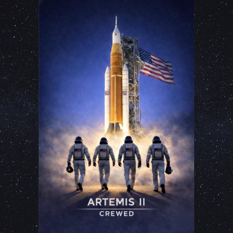 Artemis II Moon Mission Poster – USA 250 Sestercentennial Edition – NASA Inspired Rocket Launch Wall Art