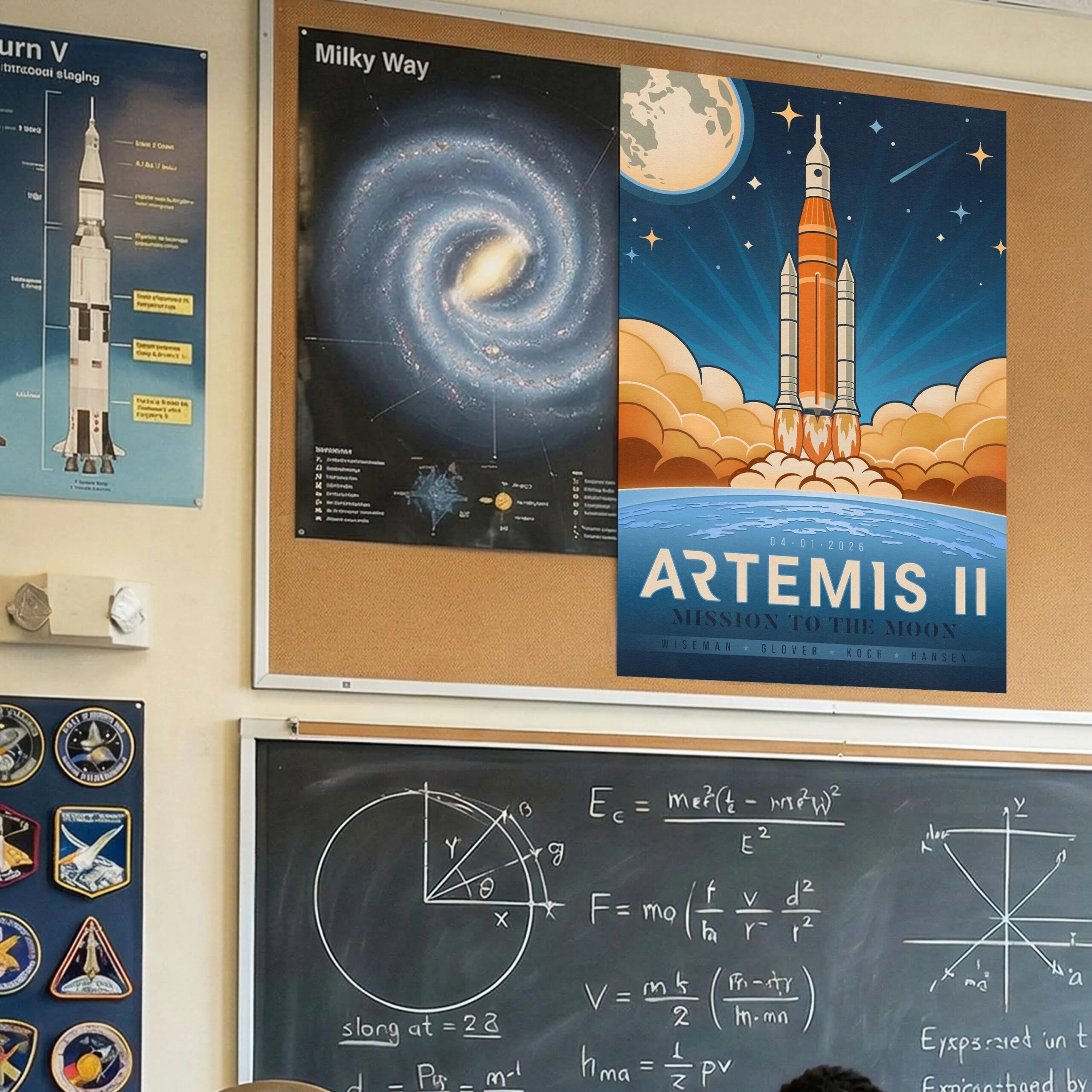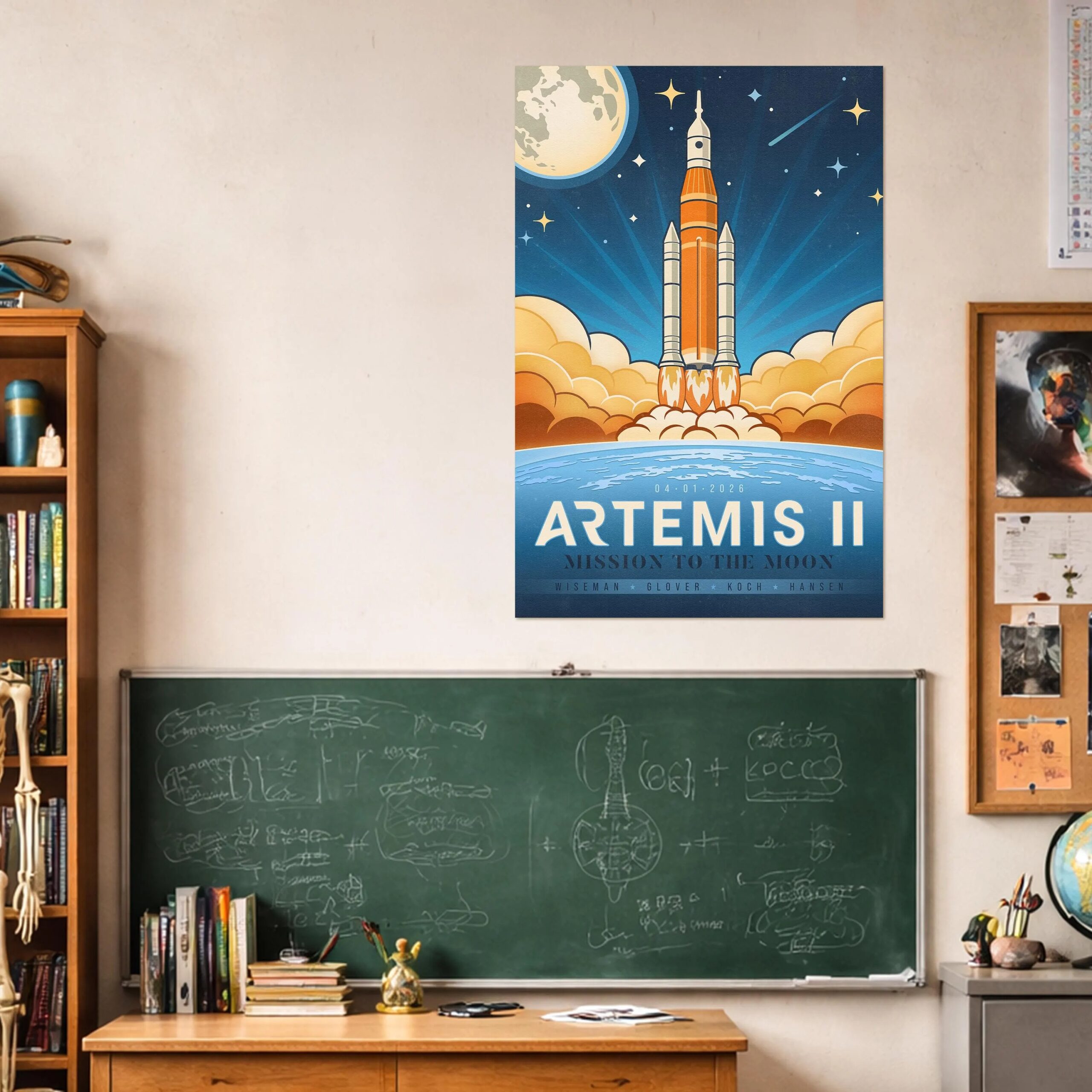 Artemis II Rocket Poster & Canvas, NASA Inspired School Classroom Wall Art