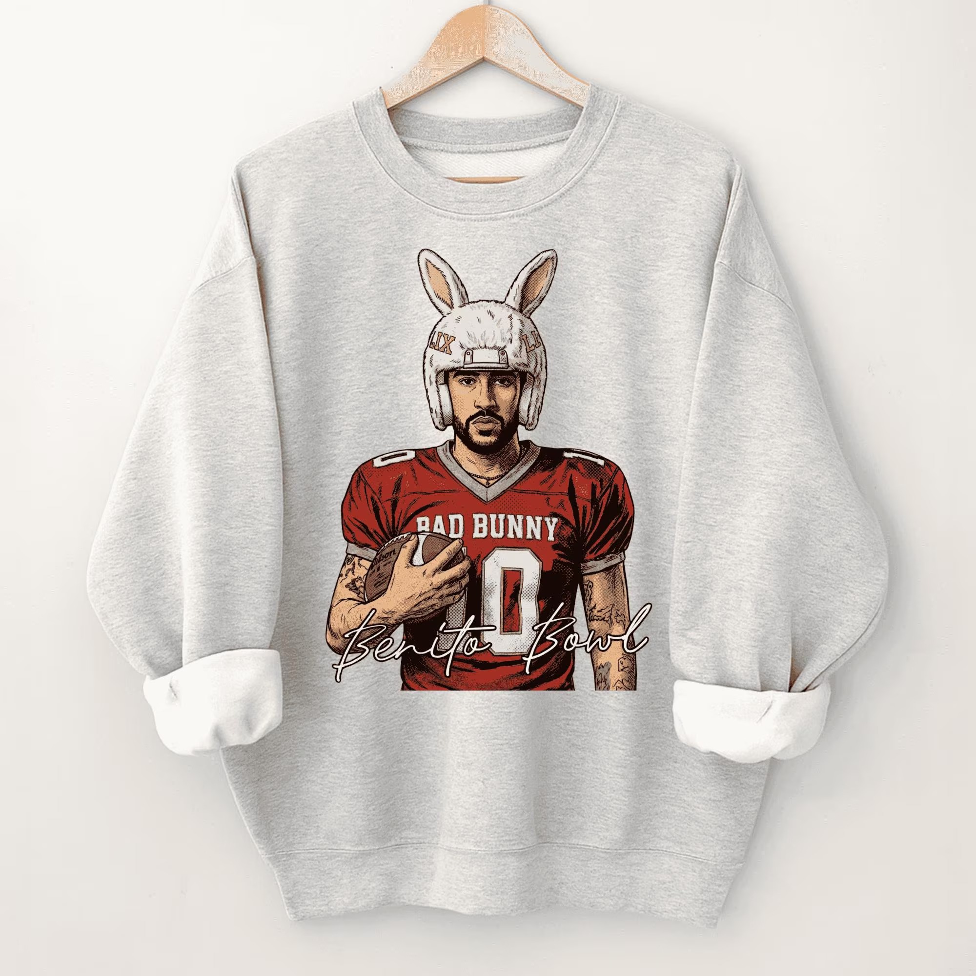 Bad Bunny Graphic Sweatshirt, Football Crewneck Shirt Sweater Hoodie, Football Fan Gift