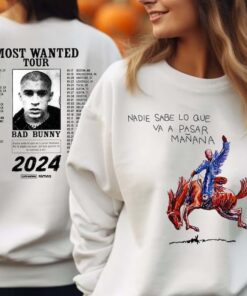 Be the first to review “Bad Bunny Most Wanted Tour Dates 2024 Double-sided Shirt, Nobody Knows What Will Happen Tomorrow Shirt”