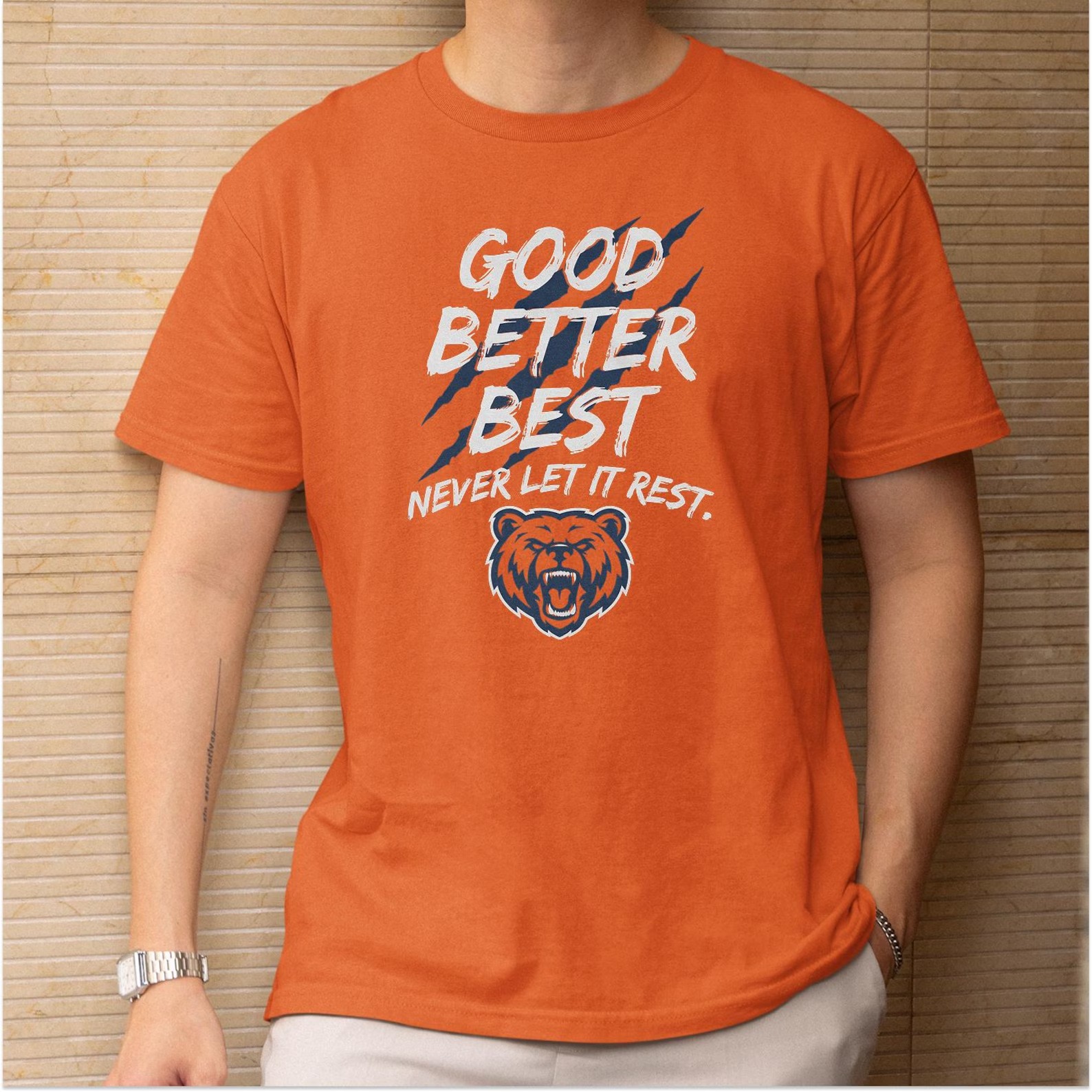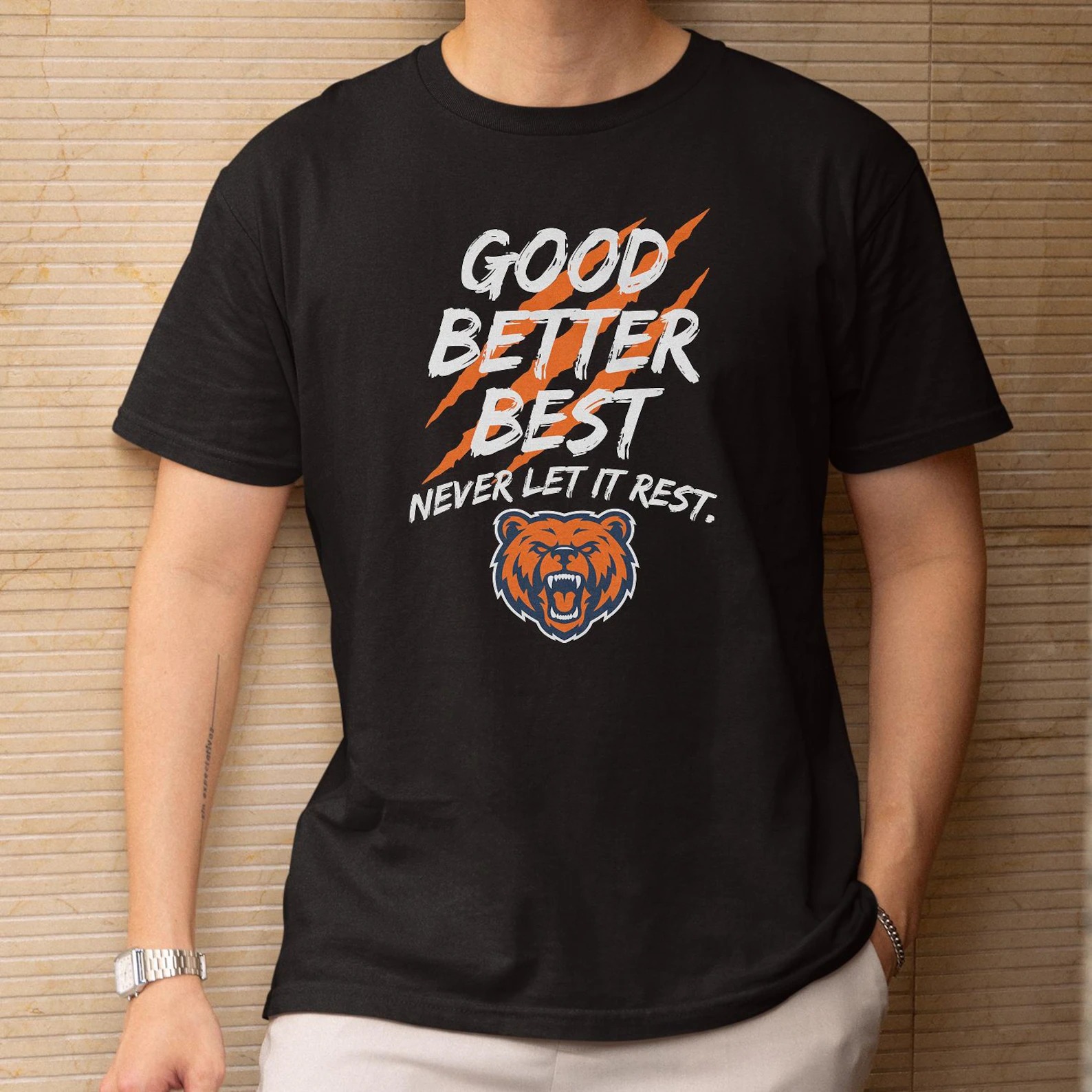 Bear Claw-Inspired Good Better Best Personalized Design, Motivational Quote Tribute Style Graphic Tee, Chicago Fans Gift Unisex T-Shirt