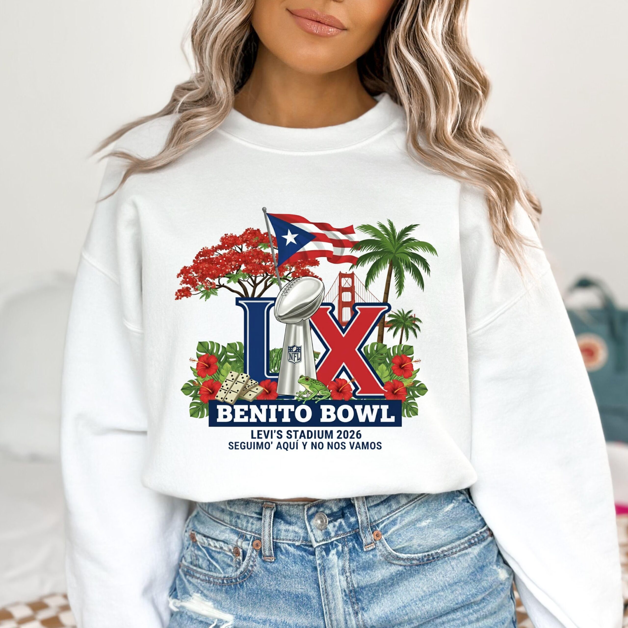 Benito Bowl Bad Bunny Sweatshirt, Super Bowl Bunny LX Shirt, Puerto Rico Music Gift, Here For The Benito Bowl Unisex Tee