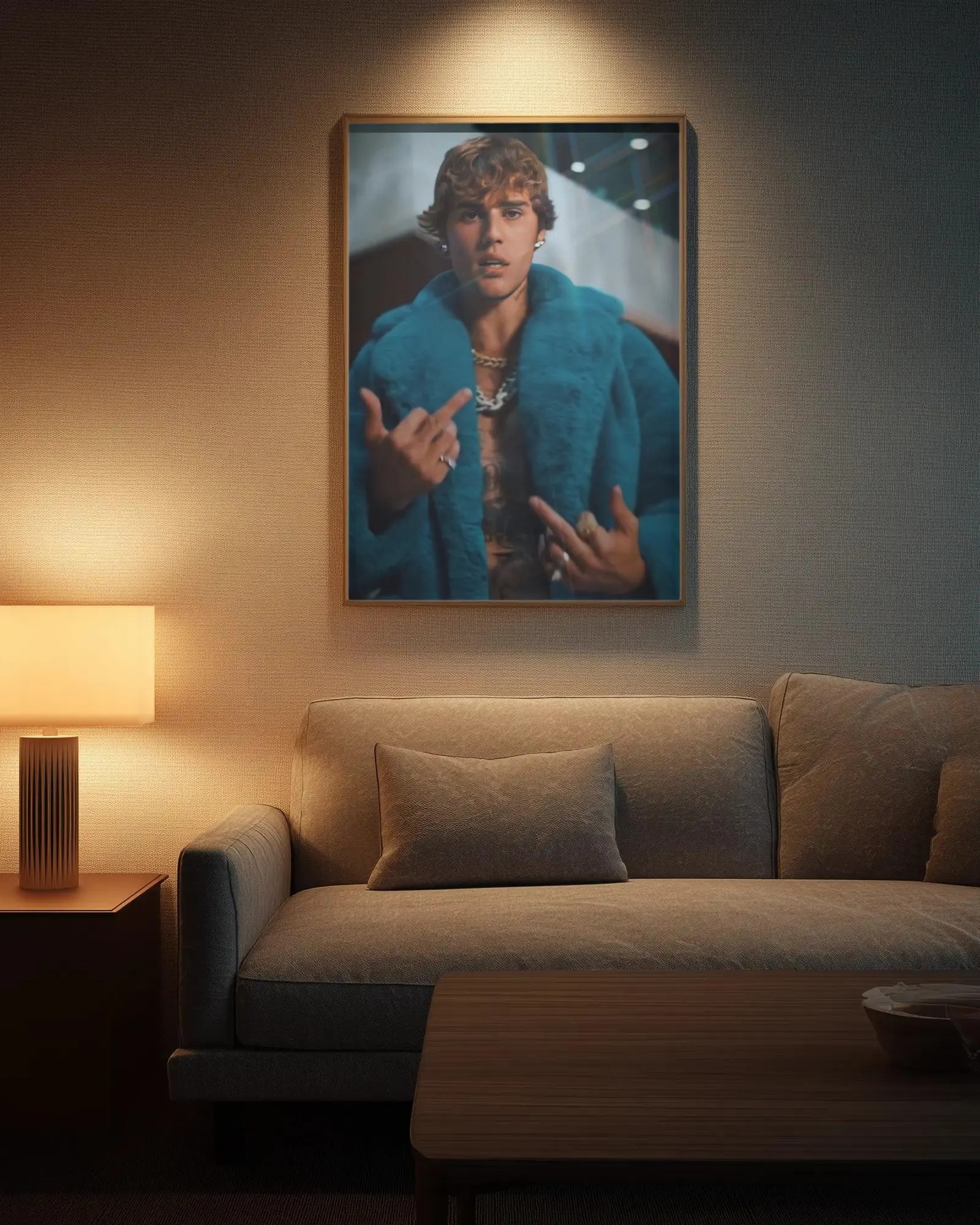 Be the first to review “Bieber 2026 Poster Aesthetic Justin Bieber Wall Art, Modern Blue Fur Coat Performance Print, Minimalist Pop Music Icon Decor”