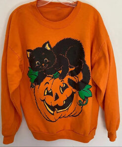 Black Cat On Pumpkin shirt, Halloween Pumpkin Shirt, Fall Sweatshirt