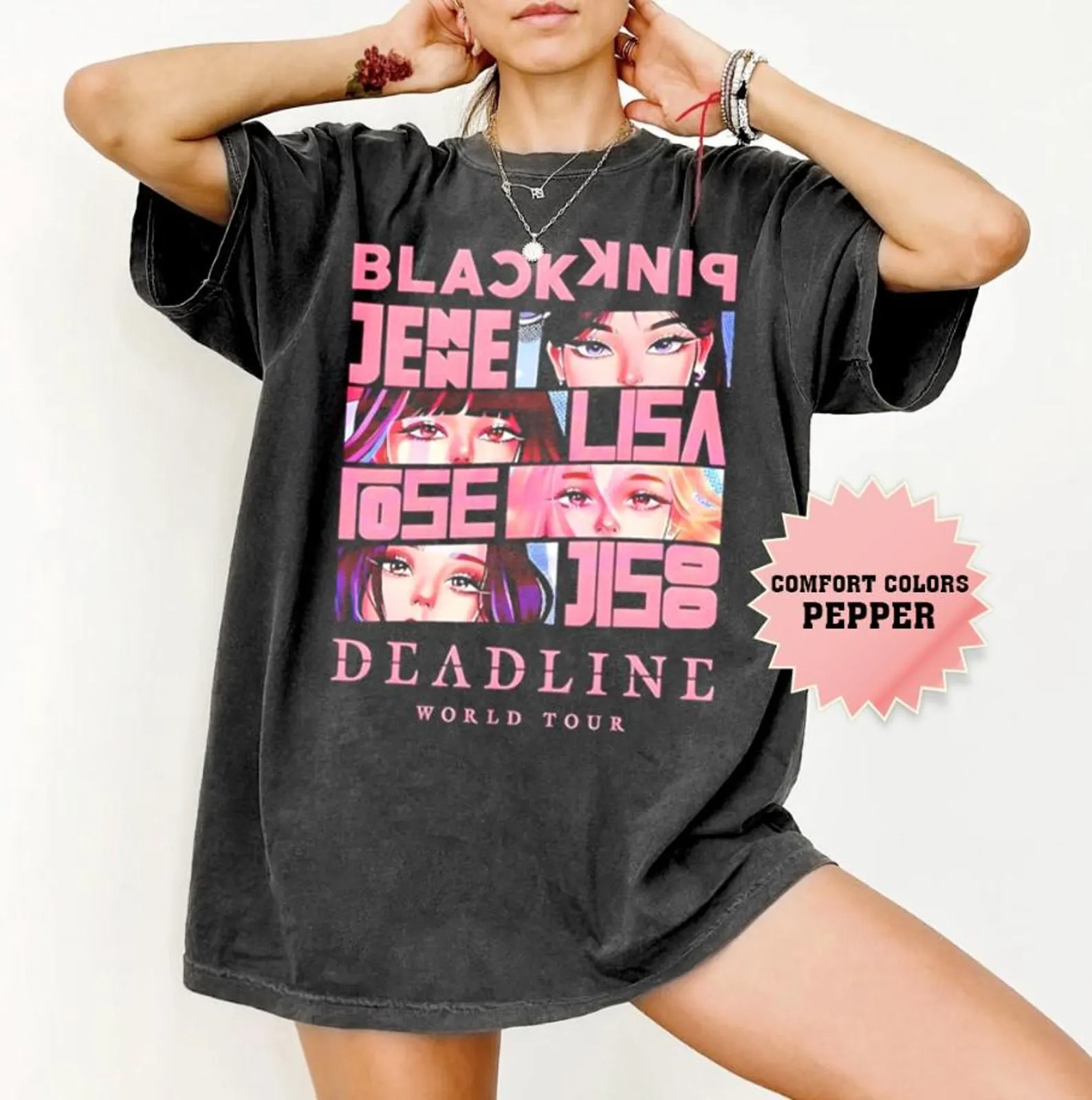 BlackPink Deadline World Tour Chibi Shirt, BlackPink Tour 2025 Vintage Retro Tee, Kpop Fan Tee, Music Retro Y2k T-Shirt