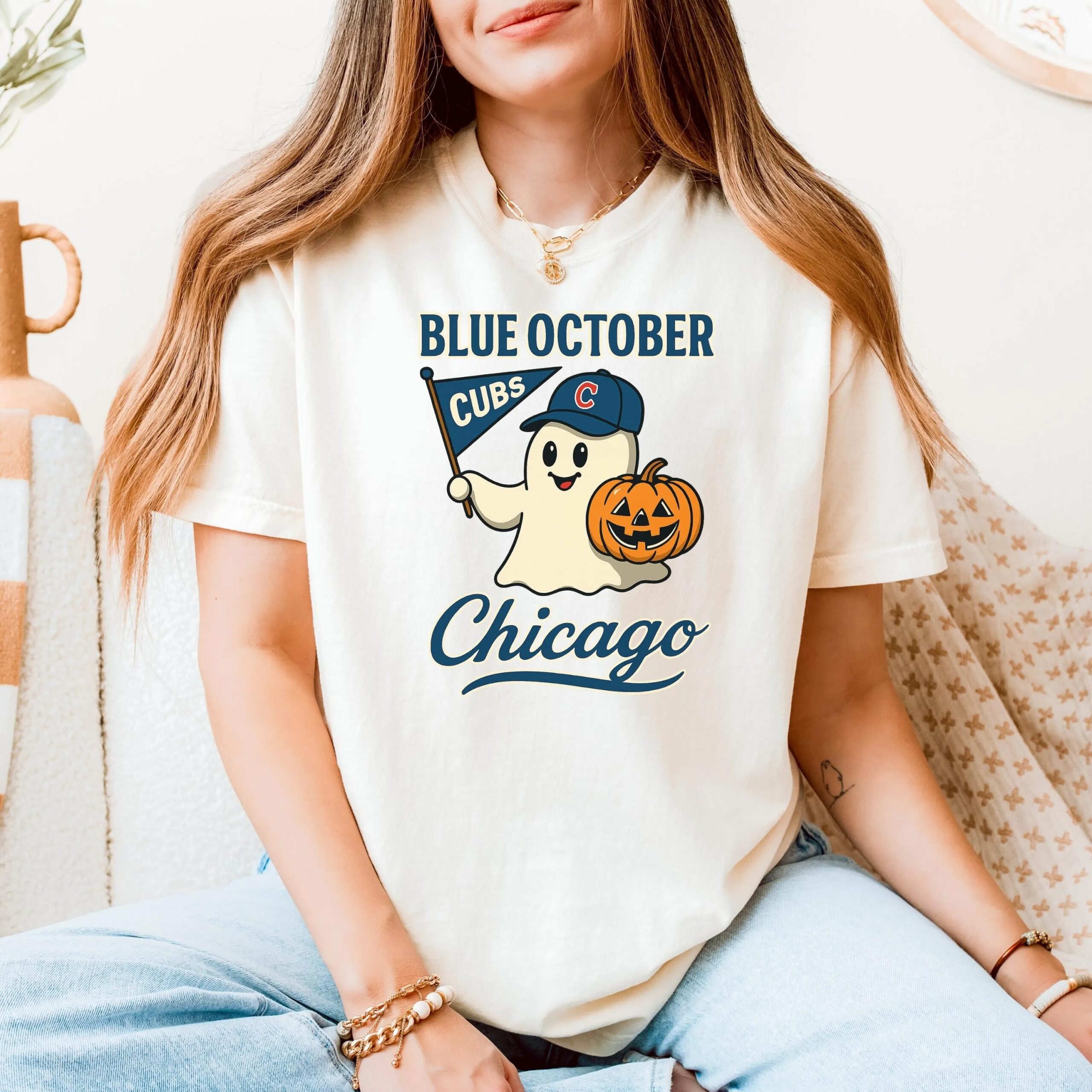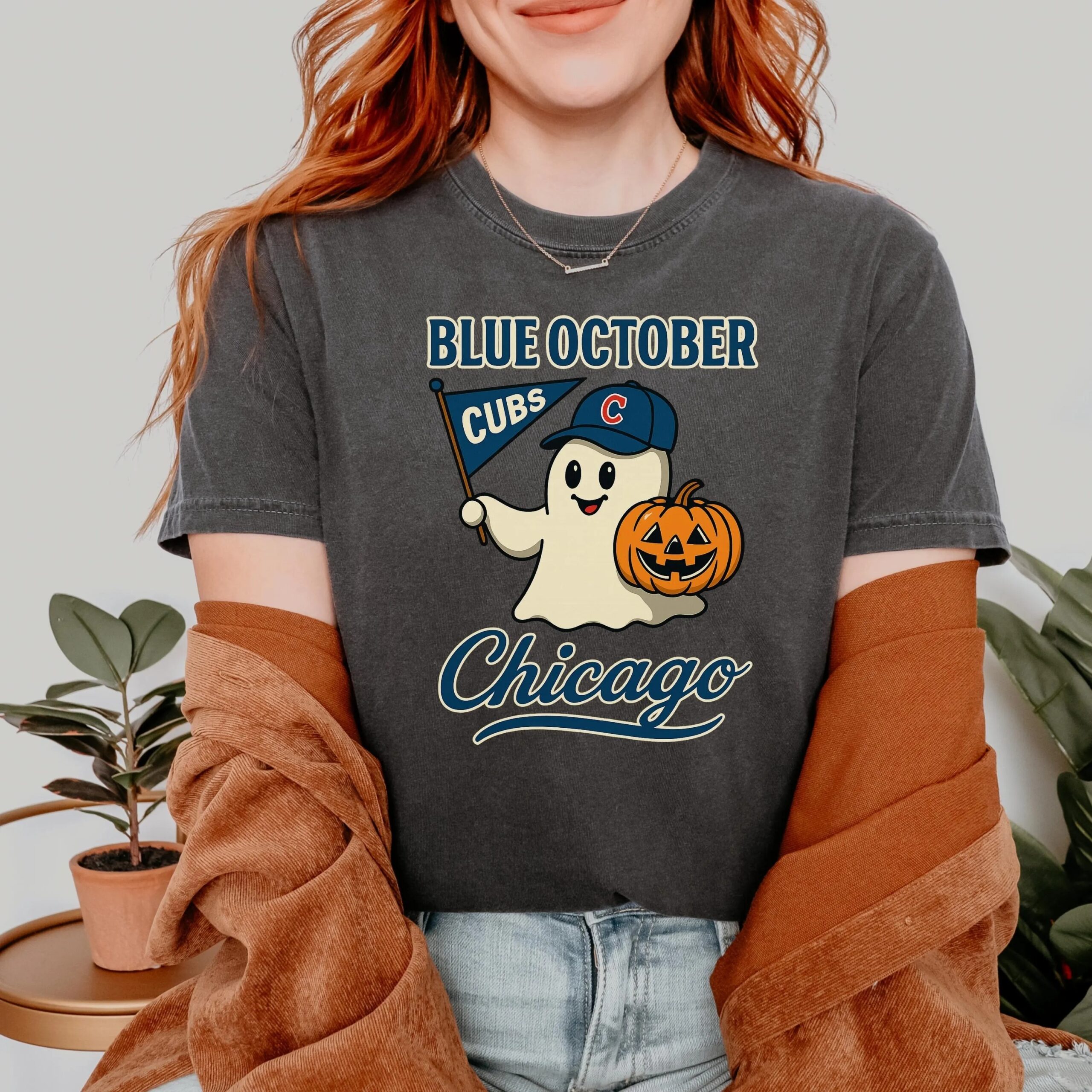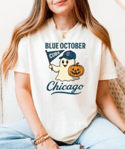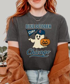 Blue October Chicago Cubs Halloween Ghost Shirt, Chicago Blue October Halloween Ghost, Chicago Cubs Tee, Chicago Cubs Baseball Top