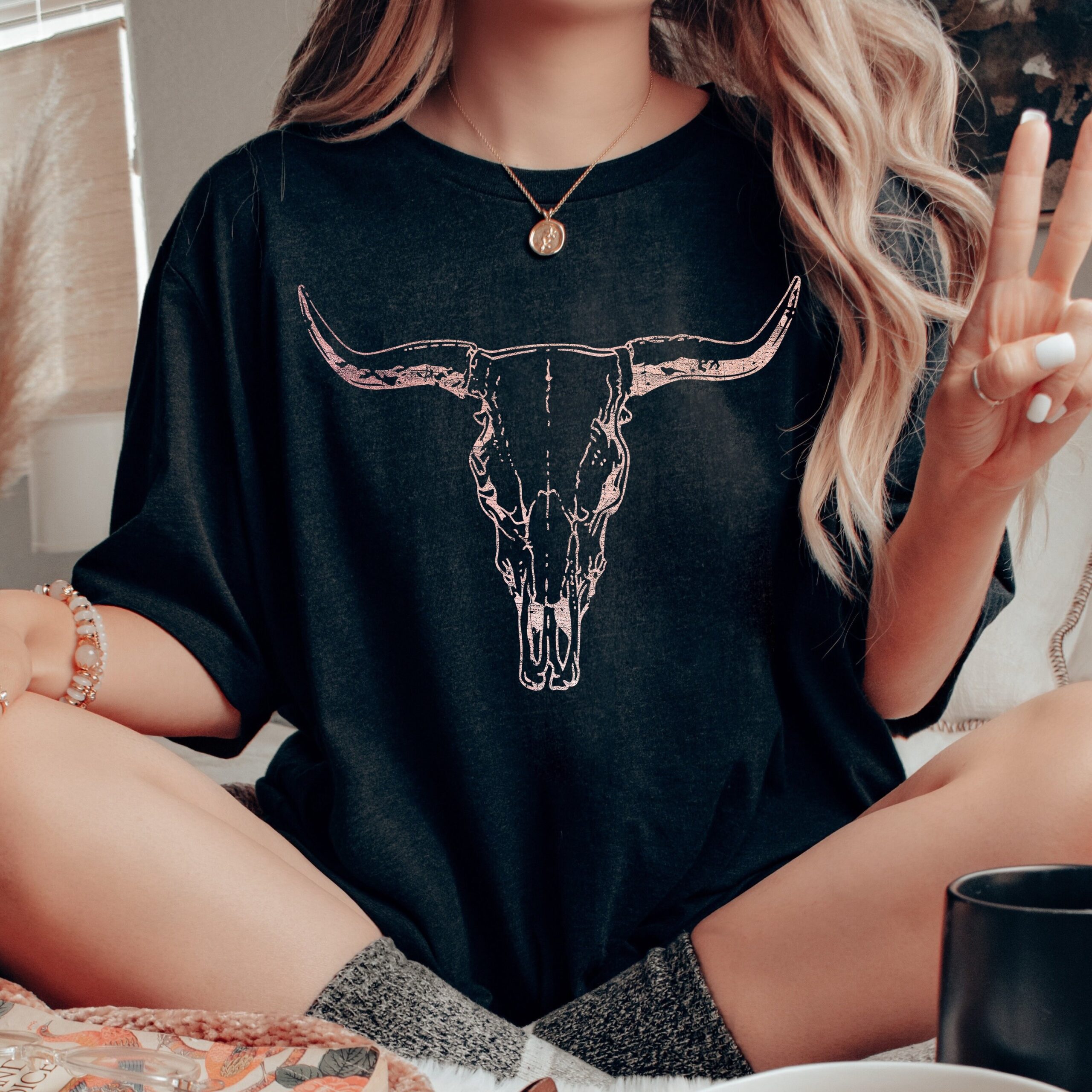 Boho Cow Skull Shirt, Cowgirl Shirt, Skull Shirt, Western Clothing, Cowboy, Boho Cow Skull, Bull Shull Shirt, Longhorn Shirt