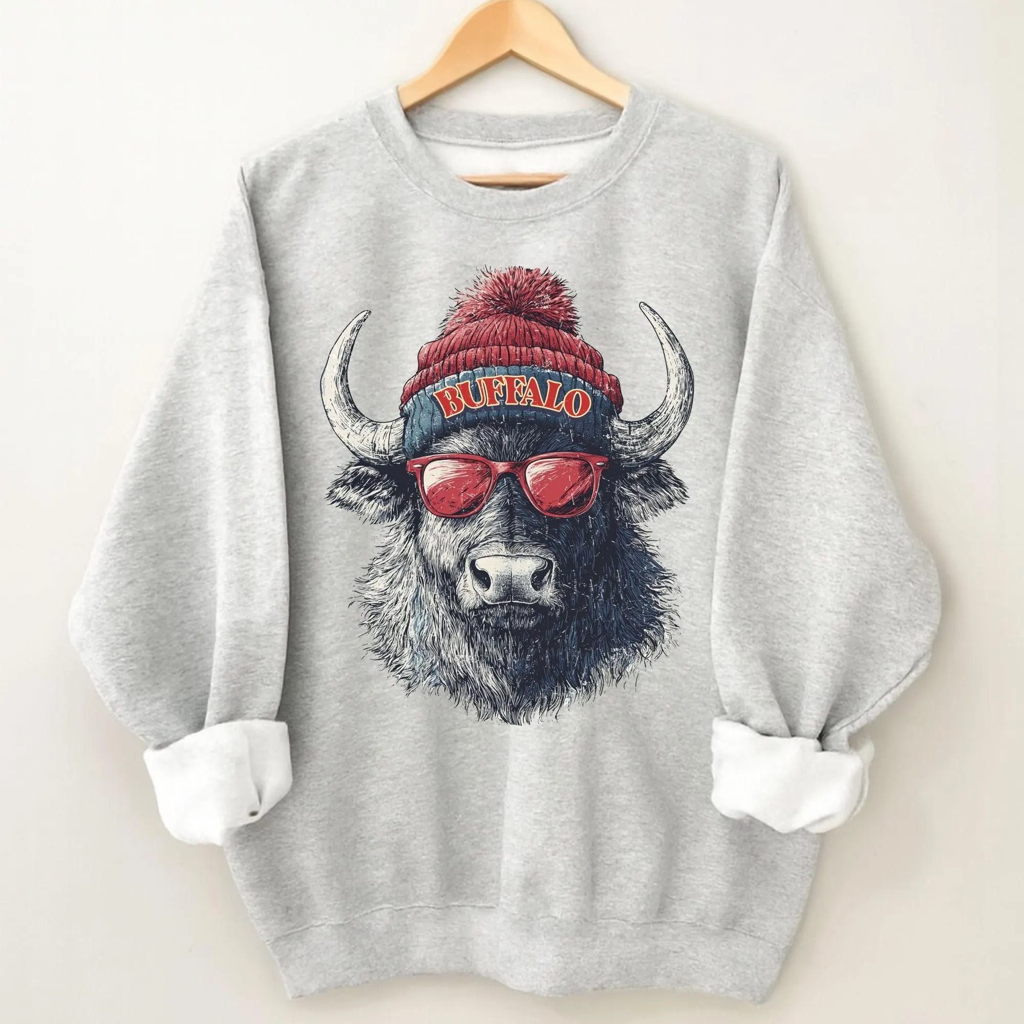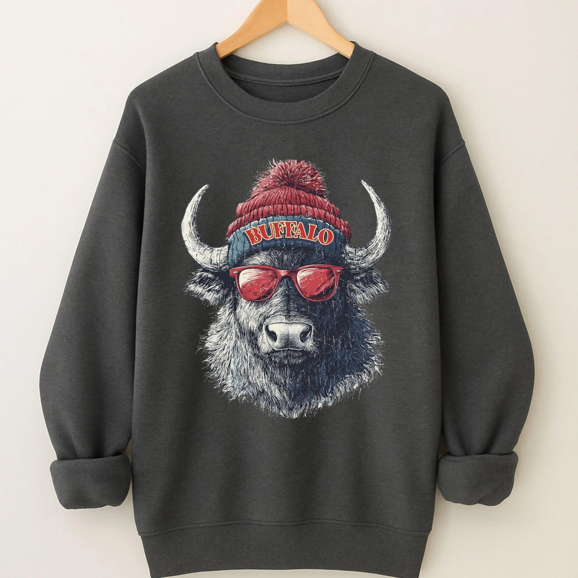 Buffalo Football Crewneck Sweatshirt, Buffalo Mascot, Football Fan Gear Shirt, Trendy Sports Apparel, Vintage Fan Gifts for Game Day