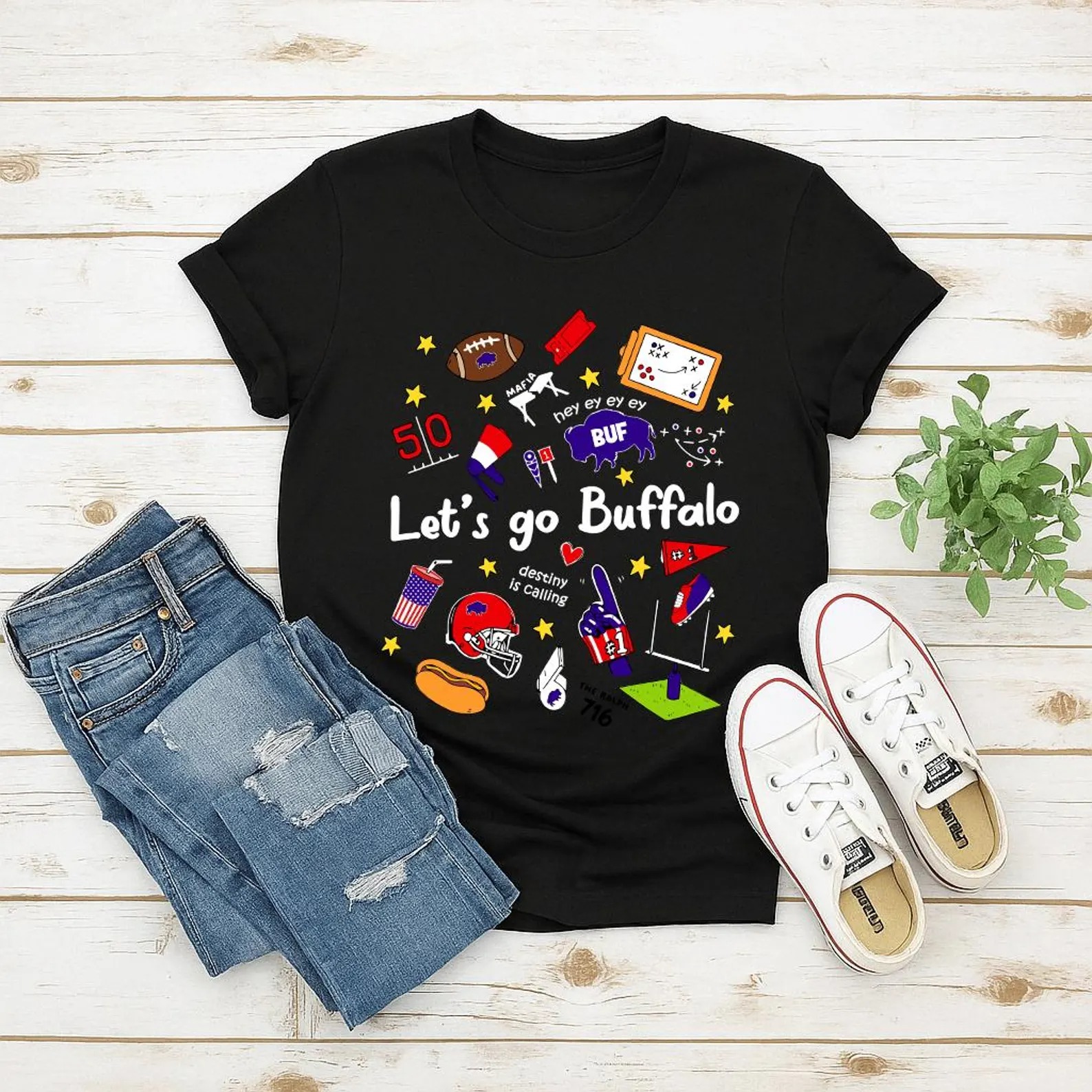 Buffalo Football Doodles Shirt, Women’s Buffalo Fan Gift, Let’s Go Buffalo, Girly Sports Tee, Buffalo Apparel