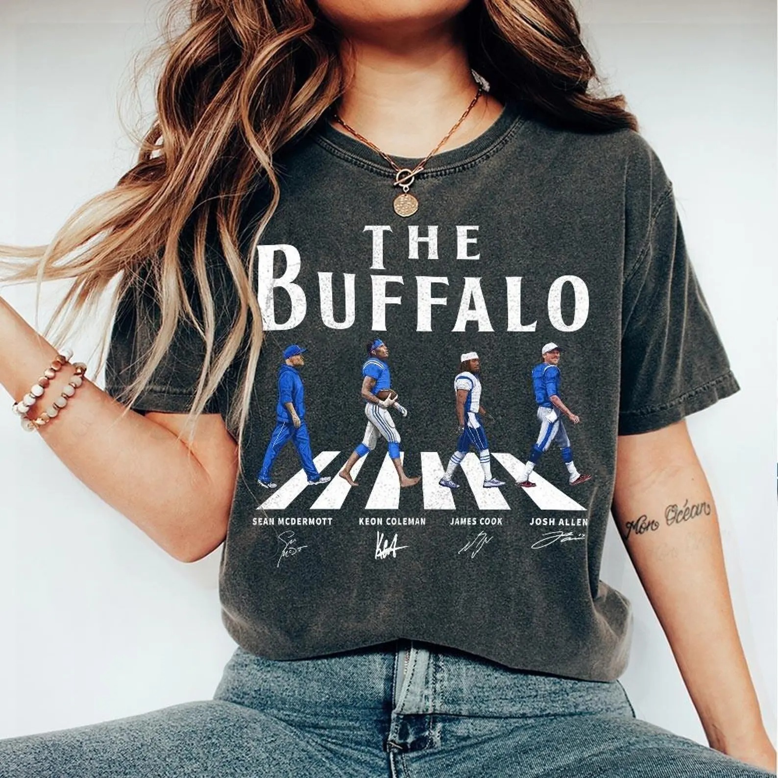 Buffalo Walking Road Signatures Football Shirt, Josh Allen Gift For Fan Football Unisex