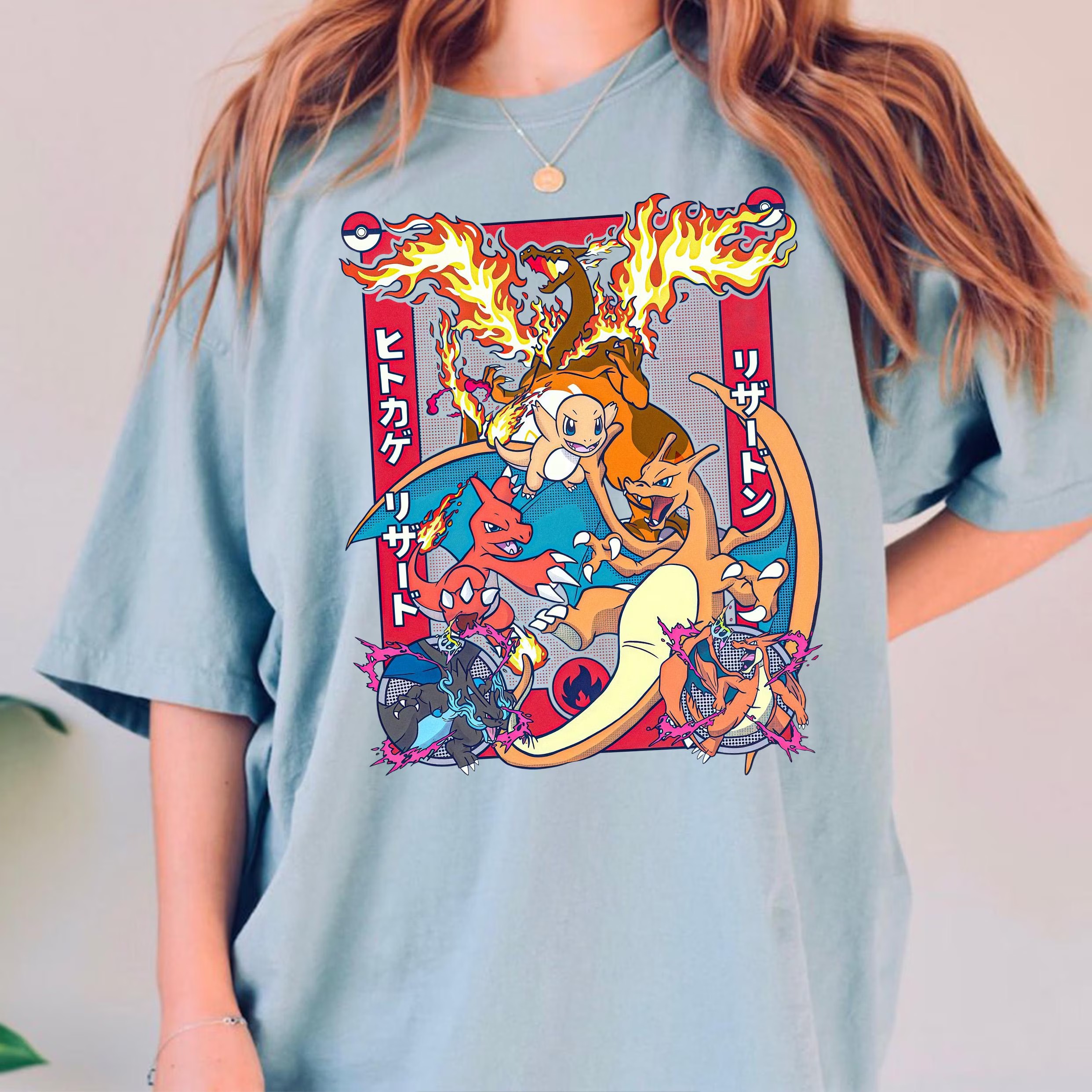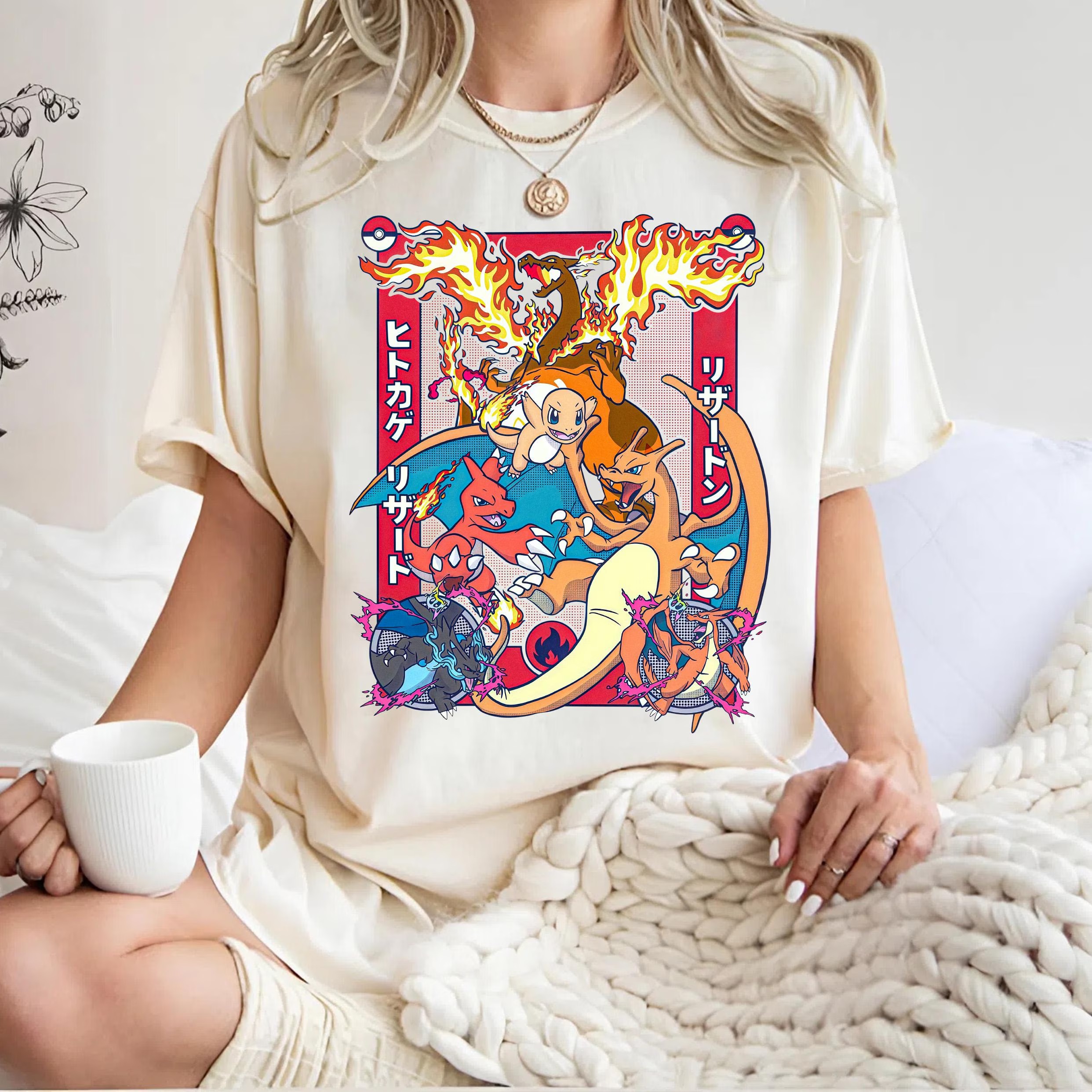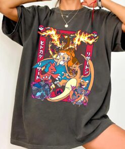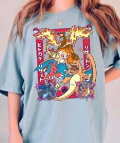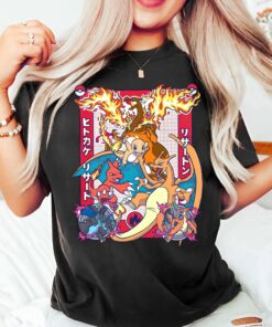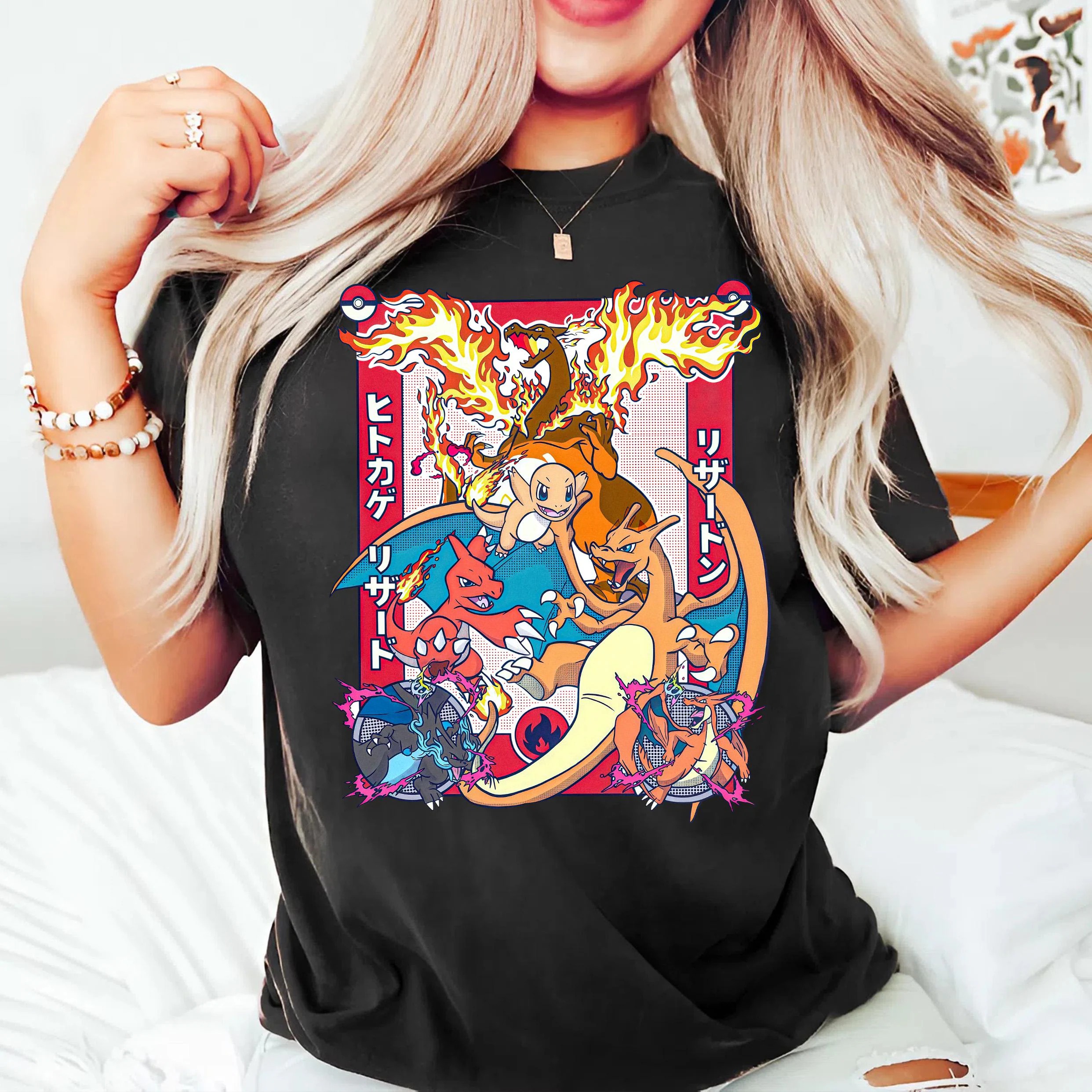 Charizard Evolution T-Shirt, Pokemon Fire Type Anime Tee, Japanese Style Pokemon Shirt
