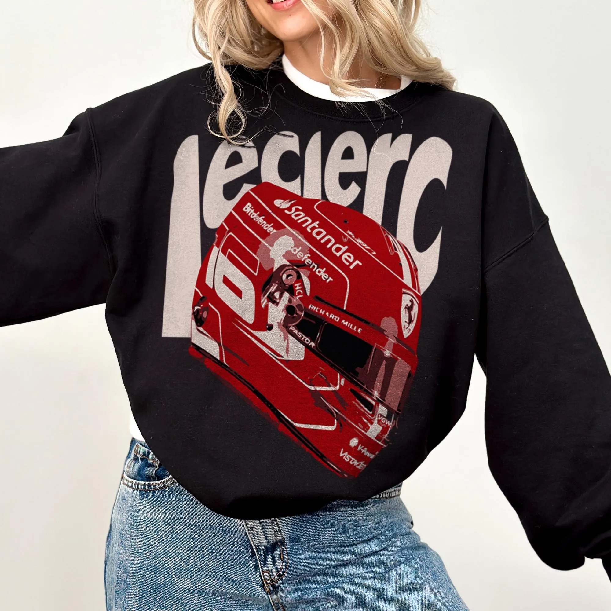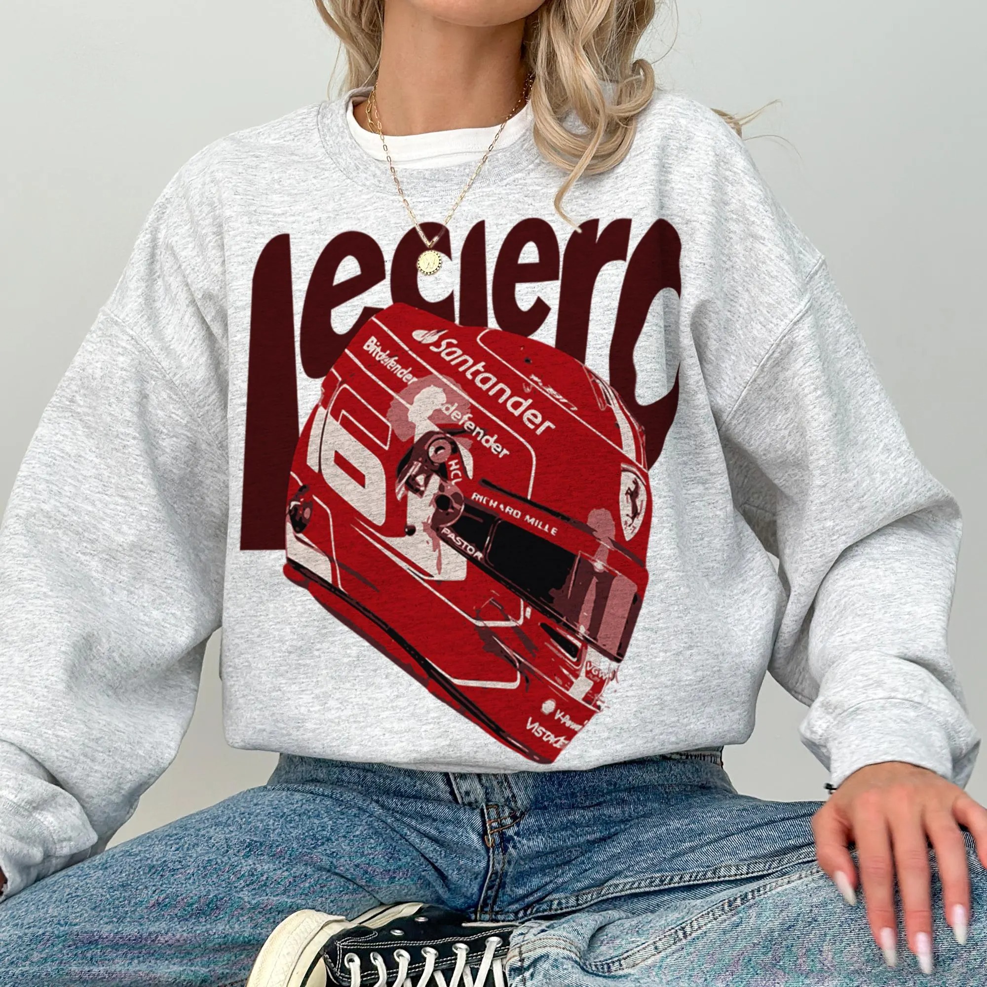 Charles Leclerc F1 Sweatshirt, Retro Ferrari Leclerc Crewneck, Vintage Leclerc Helmet Graphic Shirt, Fan Apparel Gift