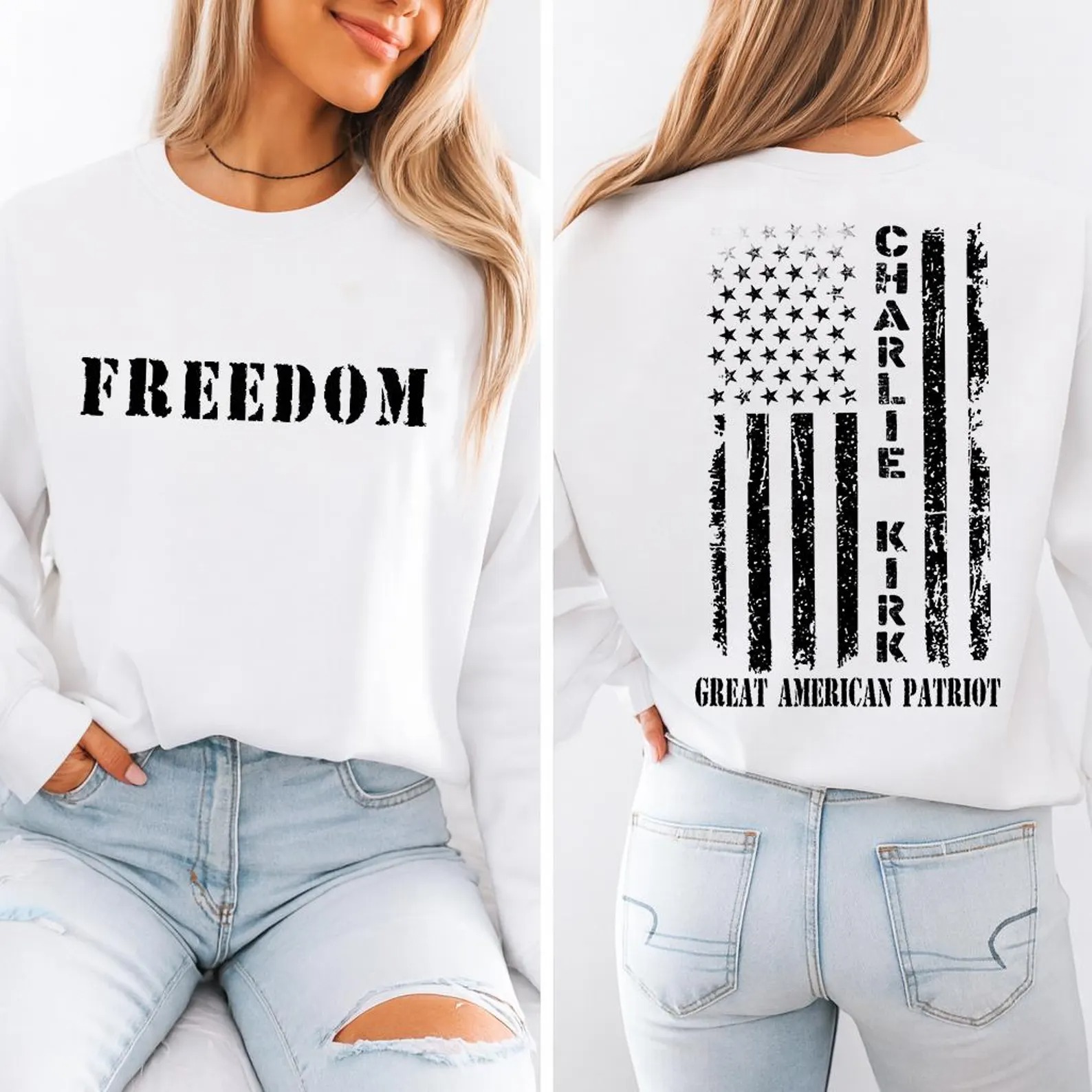 Charlie Kirk Embedded American Flag, Freedom Shirt, 325 Red Crewneck, Liberty Top, Justice for Charlie Kirk
