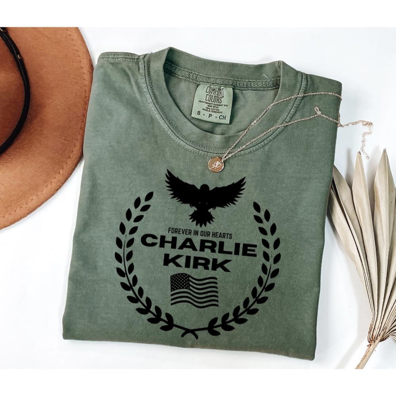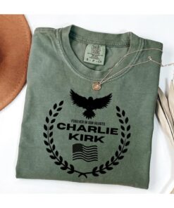 Charlie Kirk Memorial Tee – Patriotic Eagle Wreath “Forever in Our Hearts” T-Shirt, Conservative Tribute Gift, Justice for Charlie Kirk