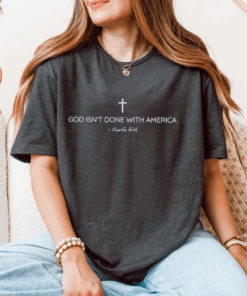 Charlie Kirk Quote Tee | God Isn’t Done With America Shirt | Christian Faith T-Shirt | Patriotic Christian Apparel