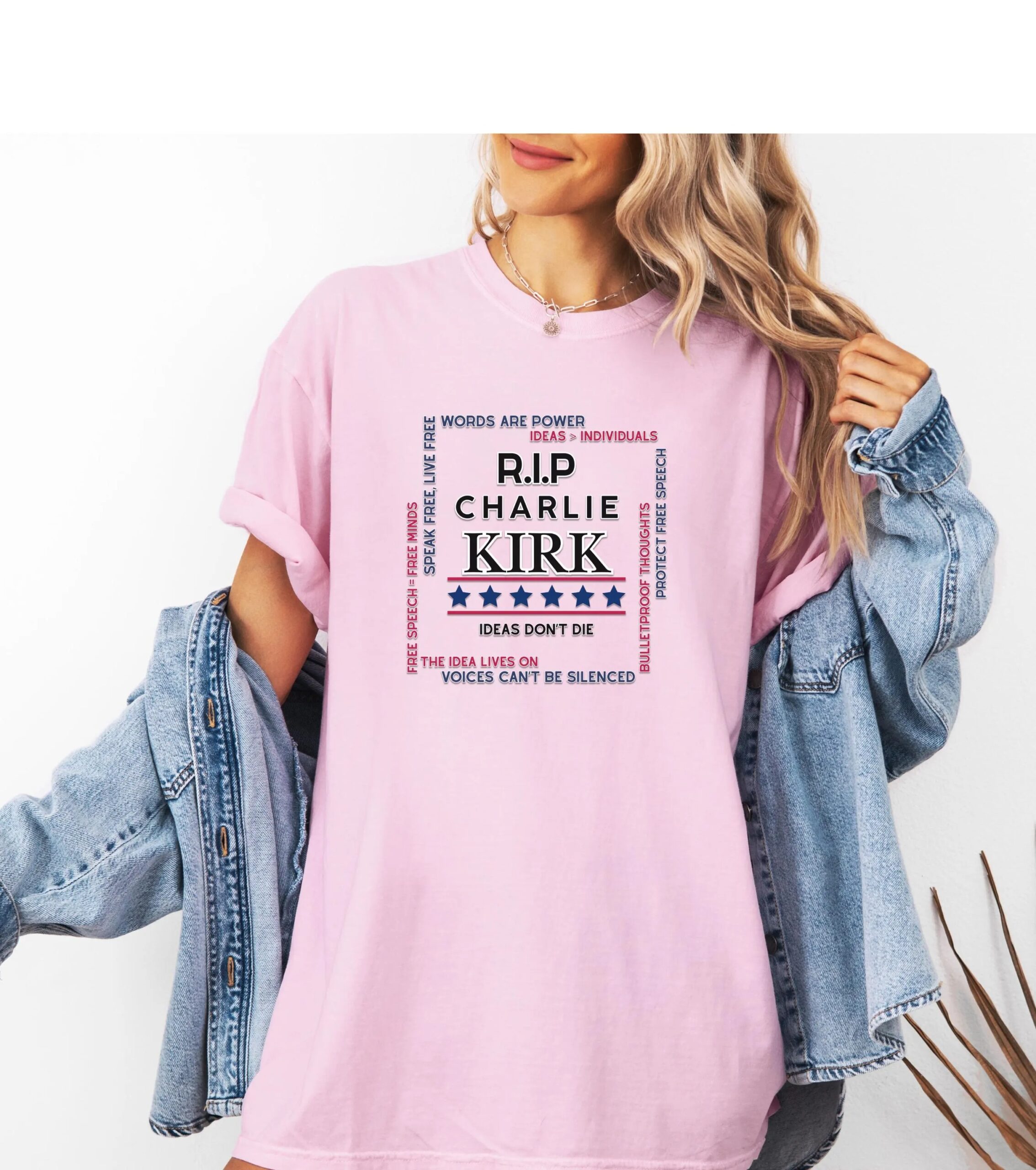 Charlie Kirk Shirt, Ideas Don’t Die Top, Oversized Graphic Tee, Free Speech Political Statement T-Shirt