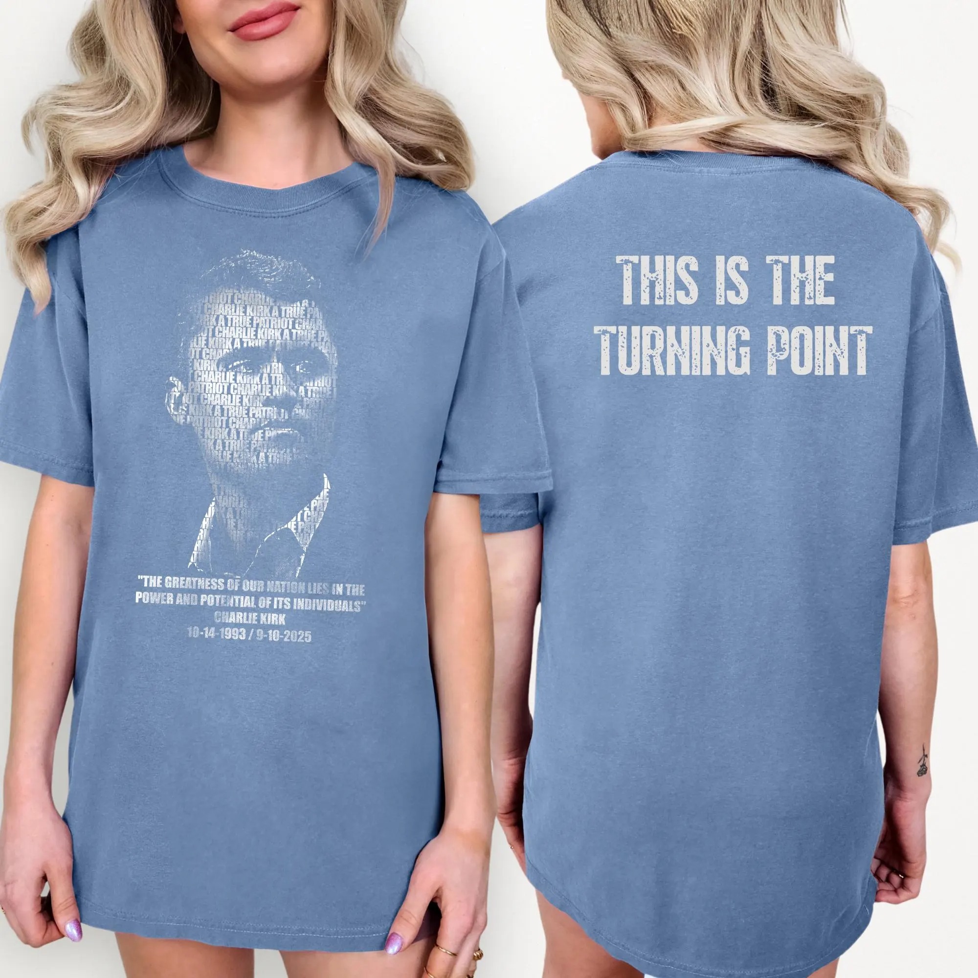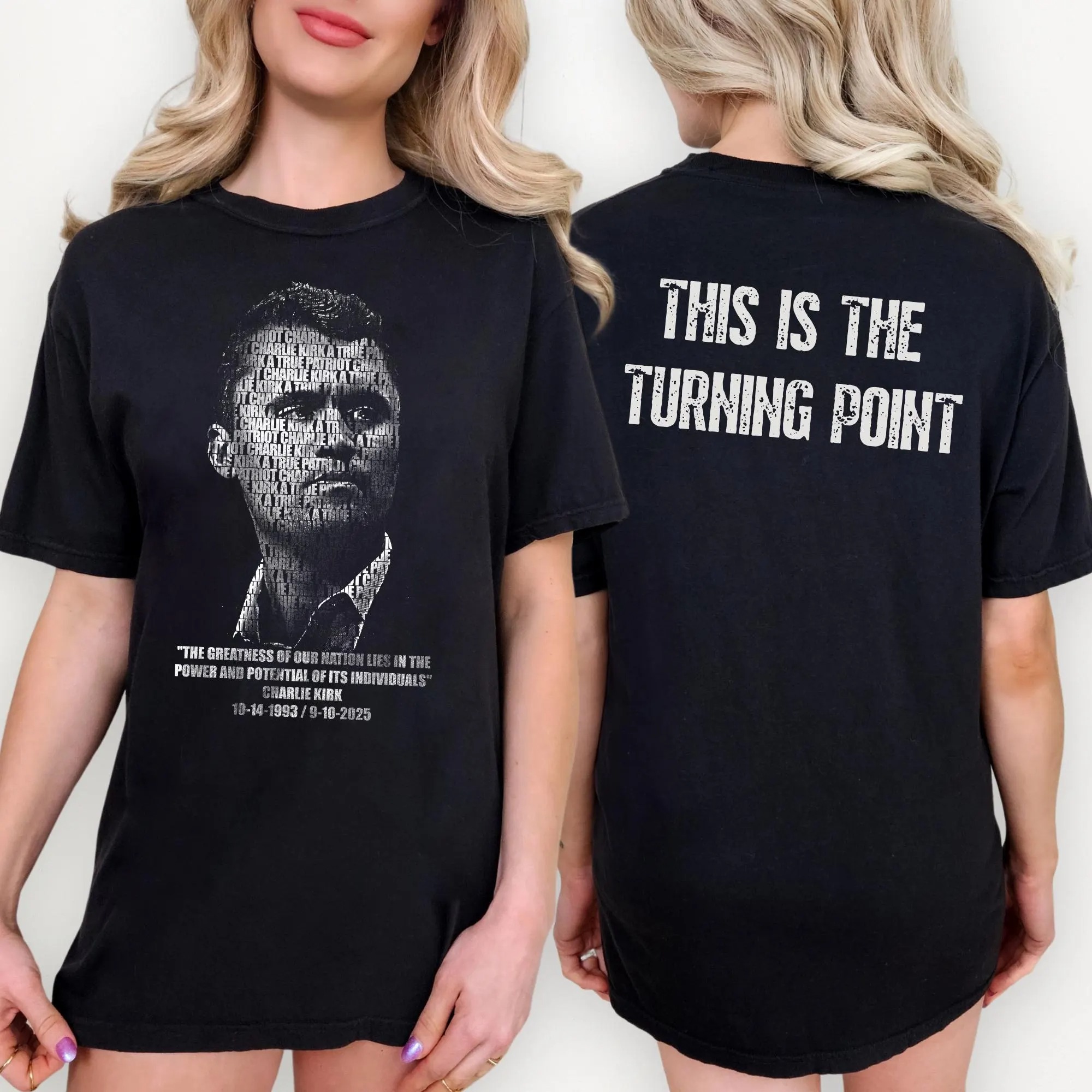 Charlie Kirk Shirt – “This Is The Turning Point Quote” T-Shirt, Two Sides Political Statement Tee, Patriotic Protest Top