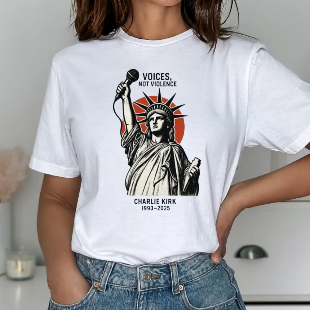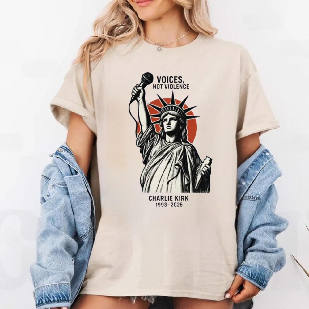 Charlie Kirk Shirt, Voices Not Violence T-Shirt, Make America Great Again, Donald Trump, Pray for Charlie Kirk Top