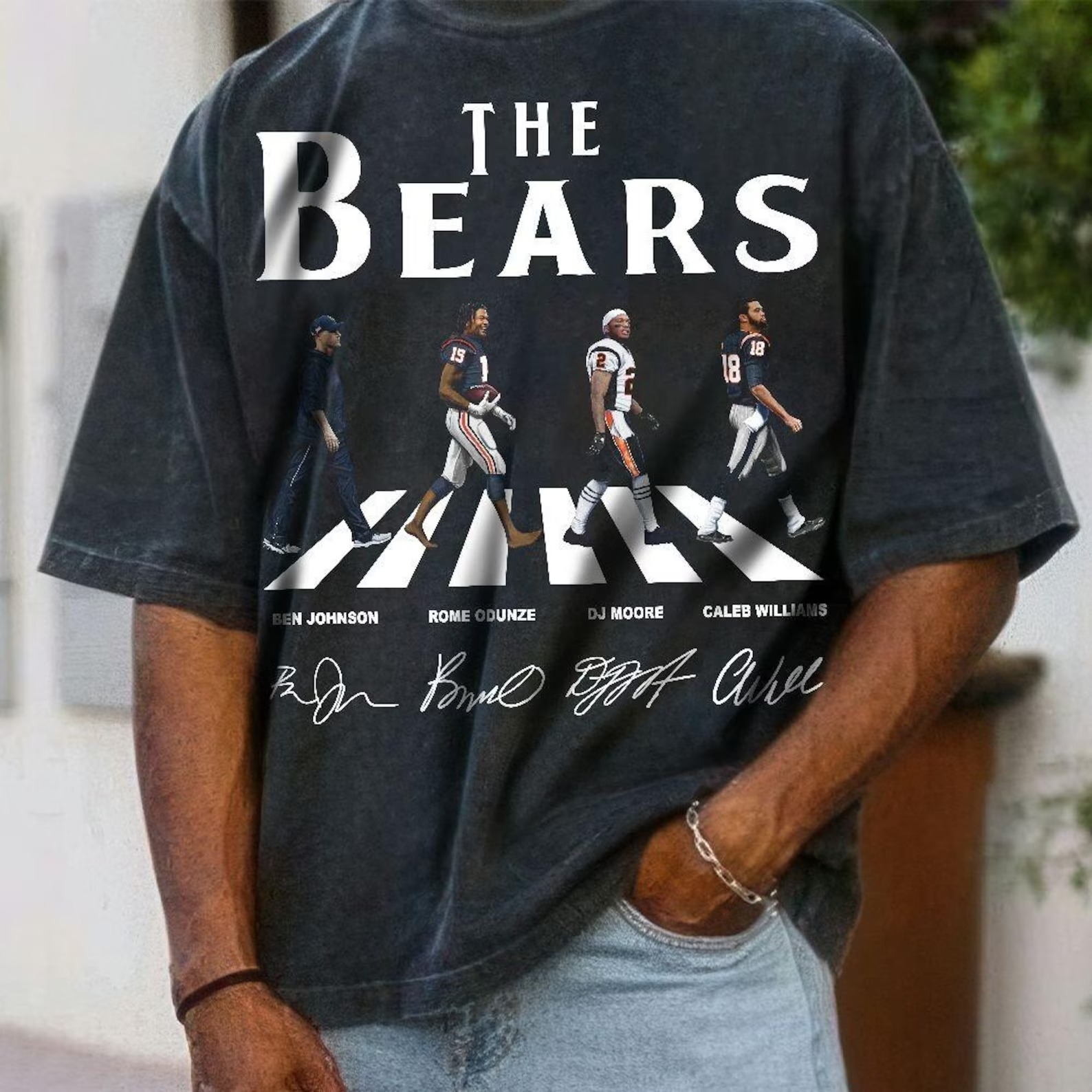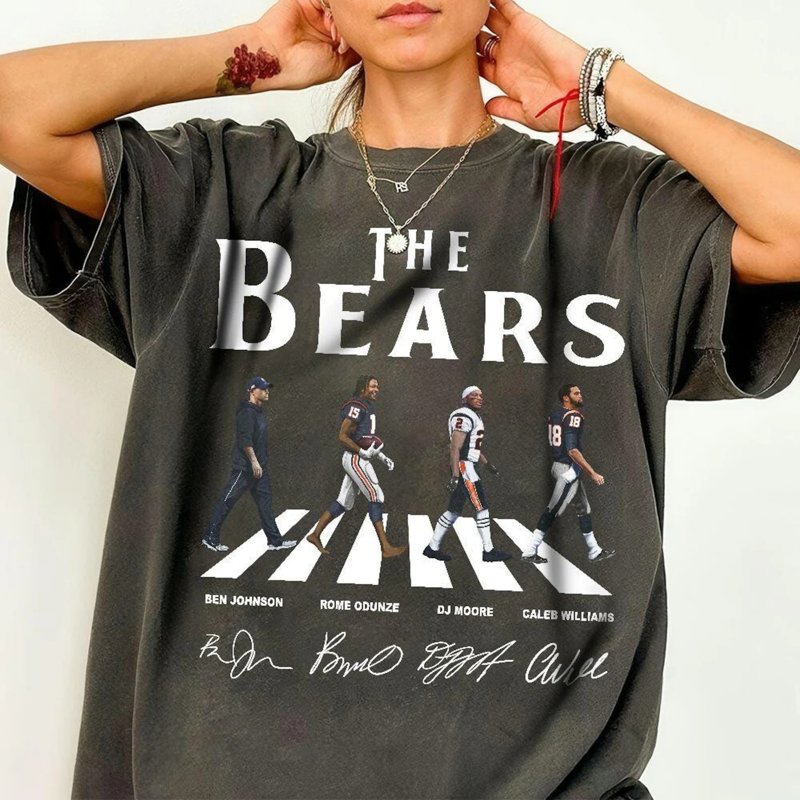 Chicago Abbey Road Signatures Football T-Shirt, Vintage Sport Shirt, Ben Johnson Caleb Williams Tee, Game Day Retro 90s Top