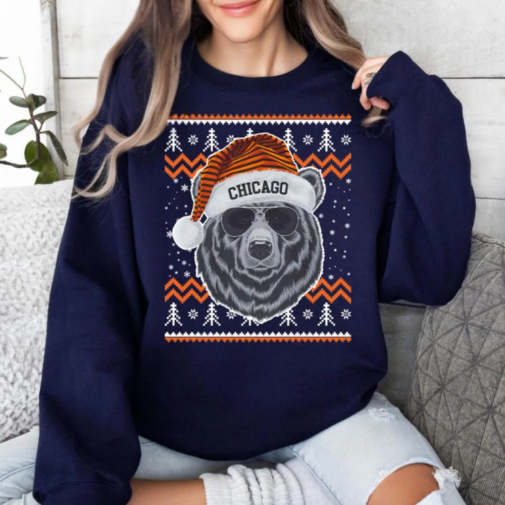 Chicago Football Mascot Ugly Pattern Vintage Christmas Sweatshirt, Chicago Sports Retro Hoodie, Game Day T-Shirt, Xmas Gifts