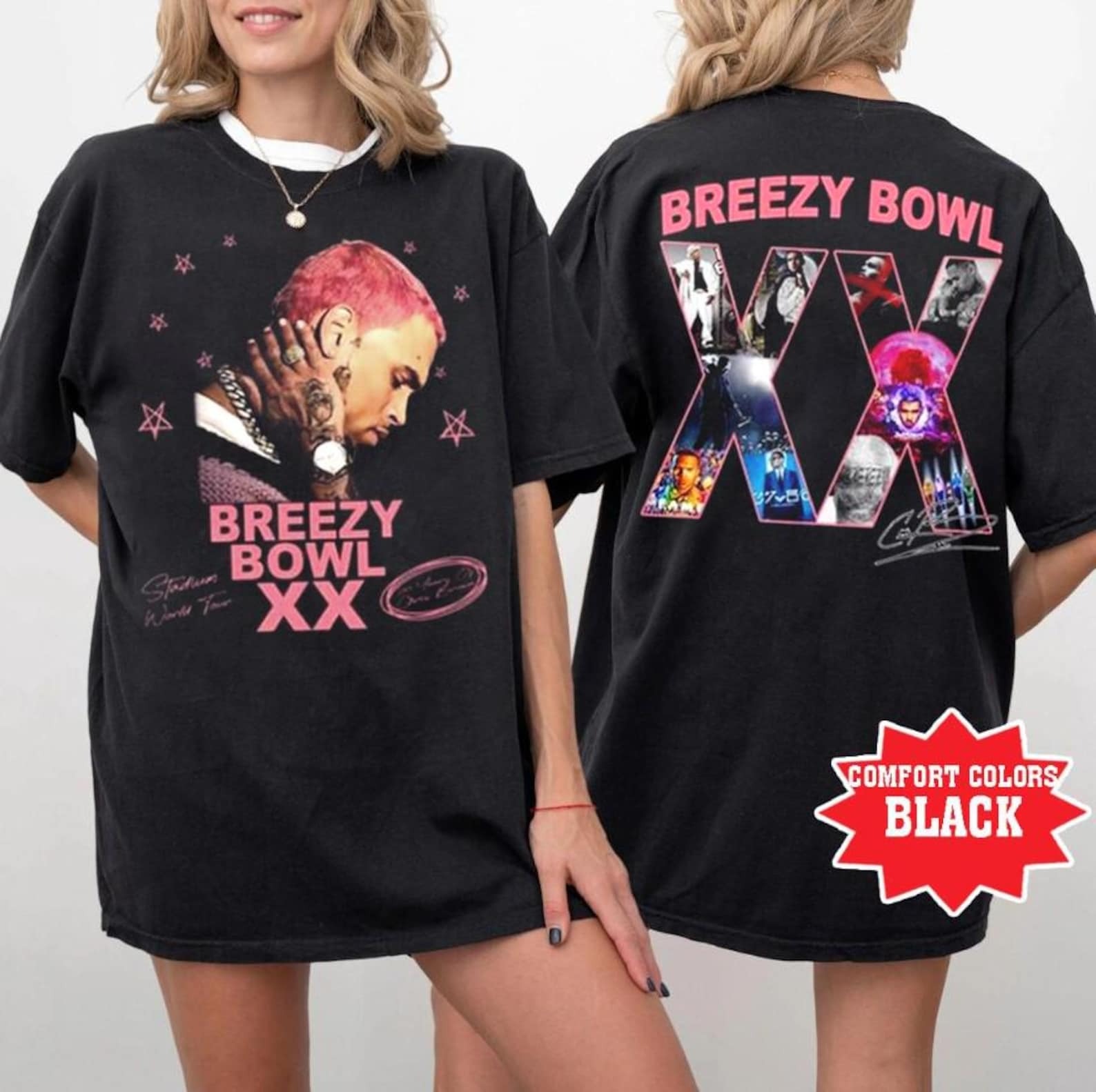 Chris Brown Breezy Bowl XX 2025 Pink Version 2 Side Shirt, Concert Retro Shirt, Chris Brown Breezy Tee, Music Y2k T-Shirt