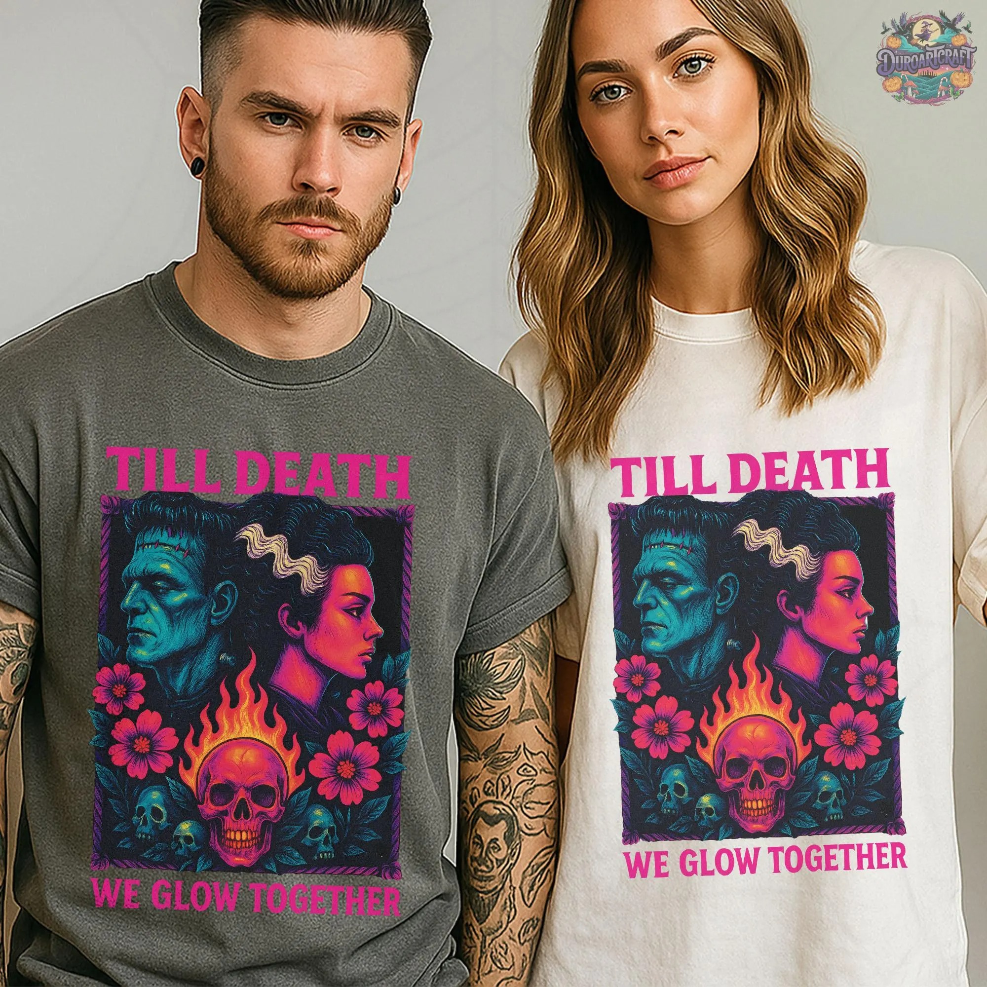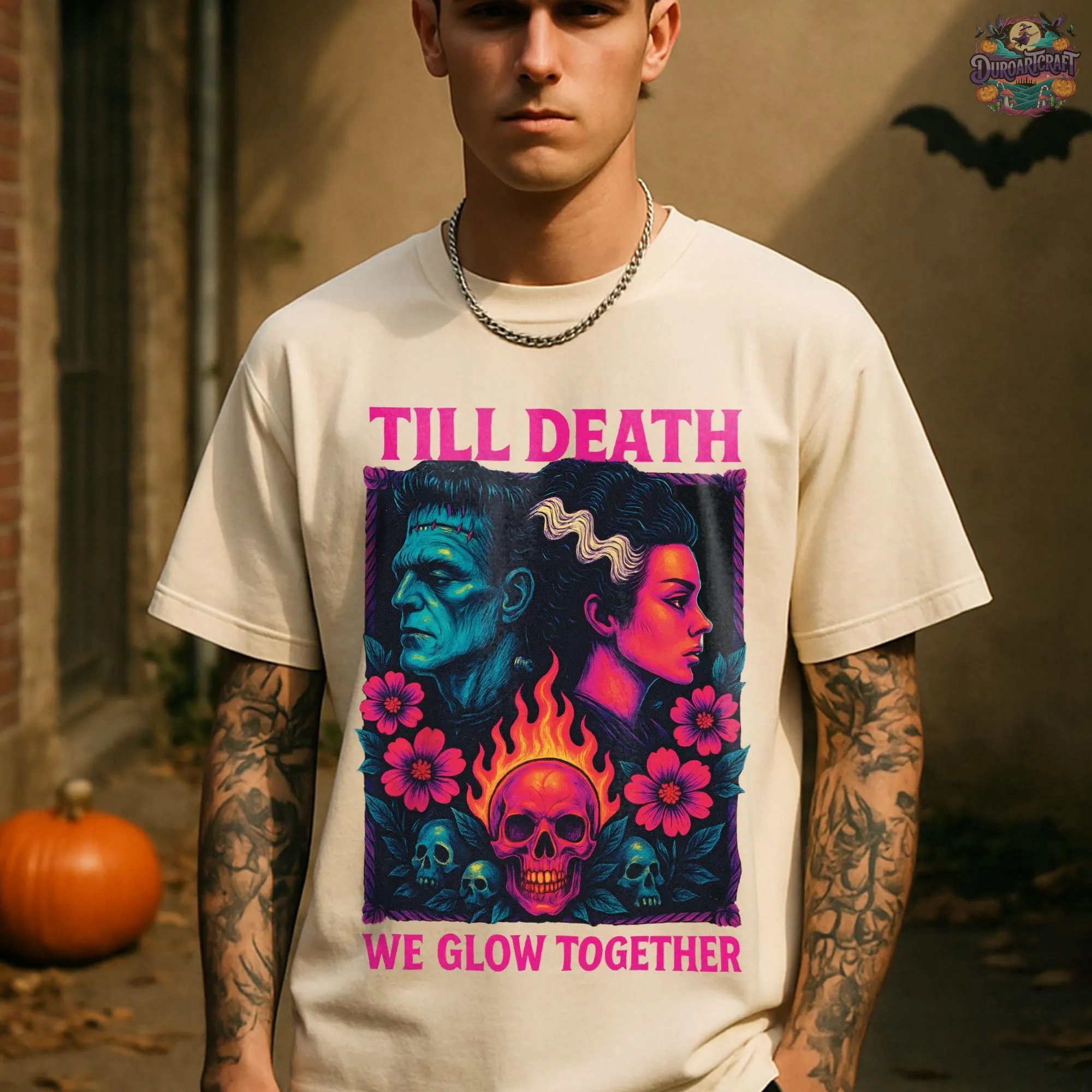 Frankenstein’s Bride Tee, Till Death We Glow Together T-Shirt, Halloween Shirt, Its Alive Top