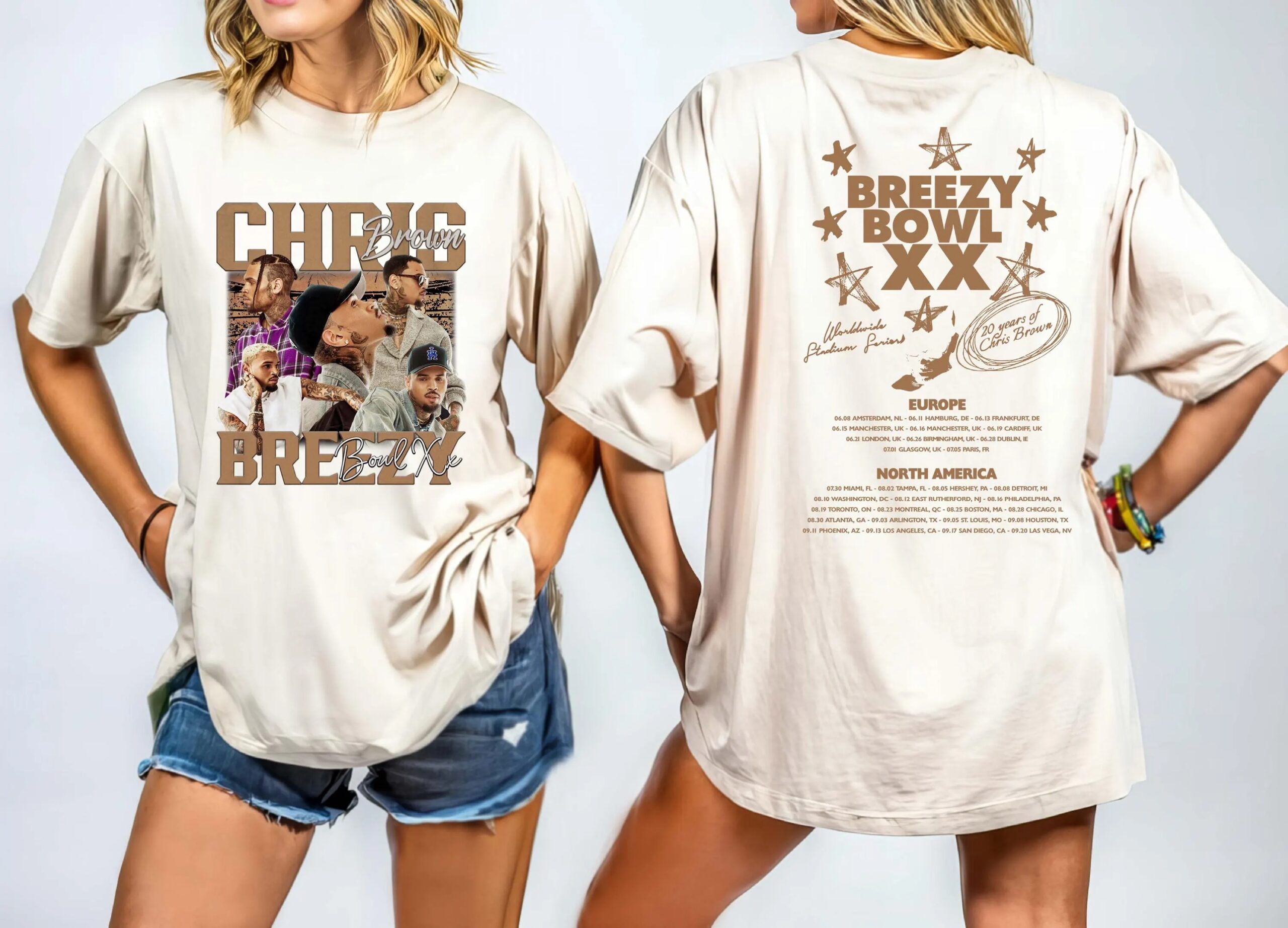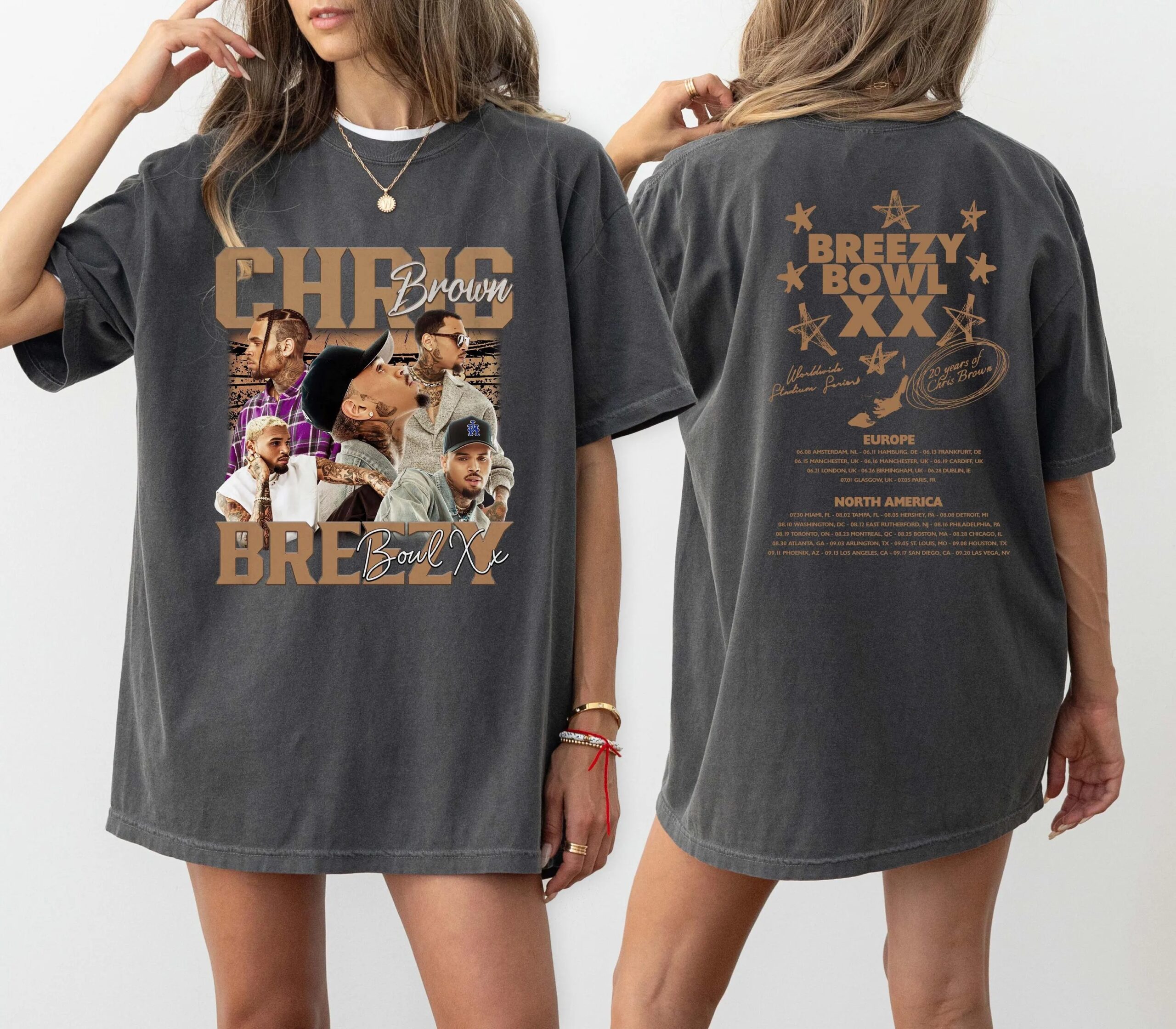 Chris Brown Tour Breezy Bowl XX V2 Vintage T-Shirt, Concert Retro 2025 Shirt, Chris Brown Graphic Tee, Music Tour Y2k Top