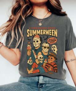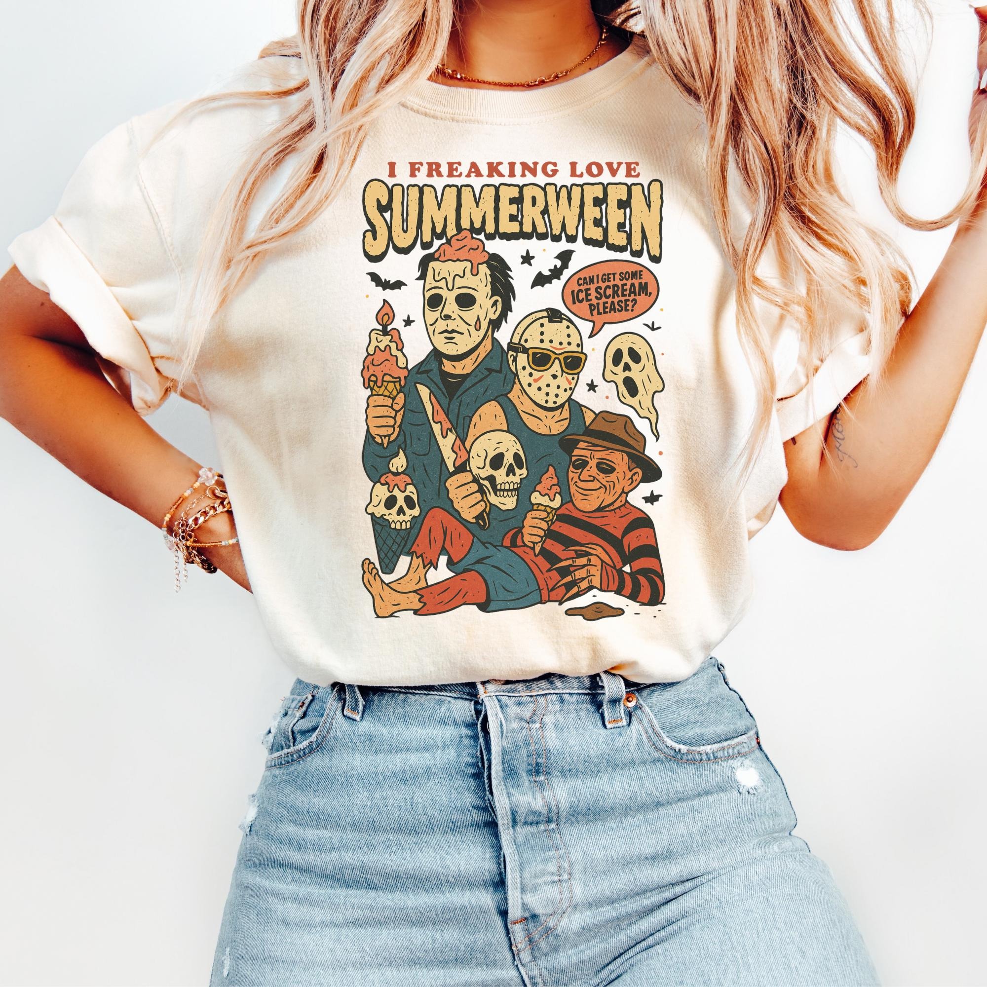 Summerween Shirt | Horror Character Ice Cream Tee | Spooky Summer Halloween T-Shirt | Freddy Jason Michael Ghost Top
