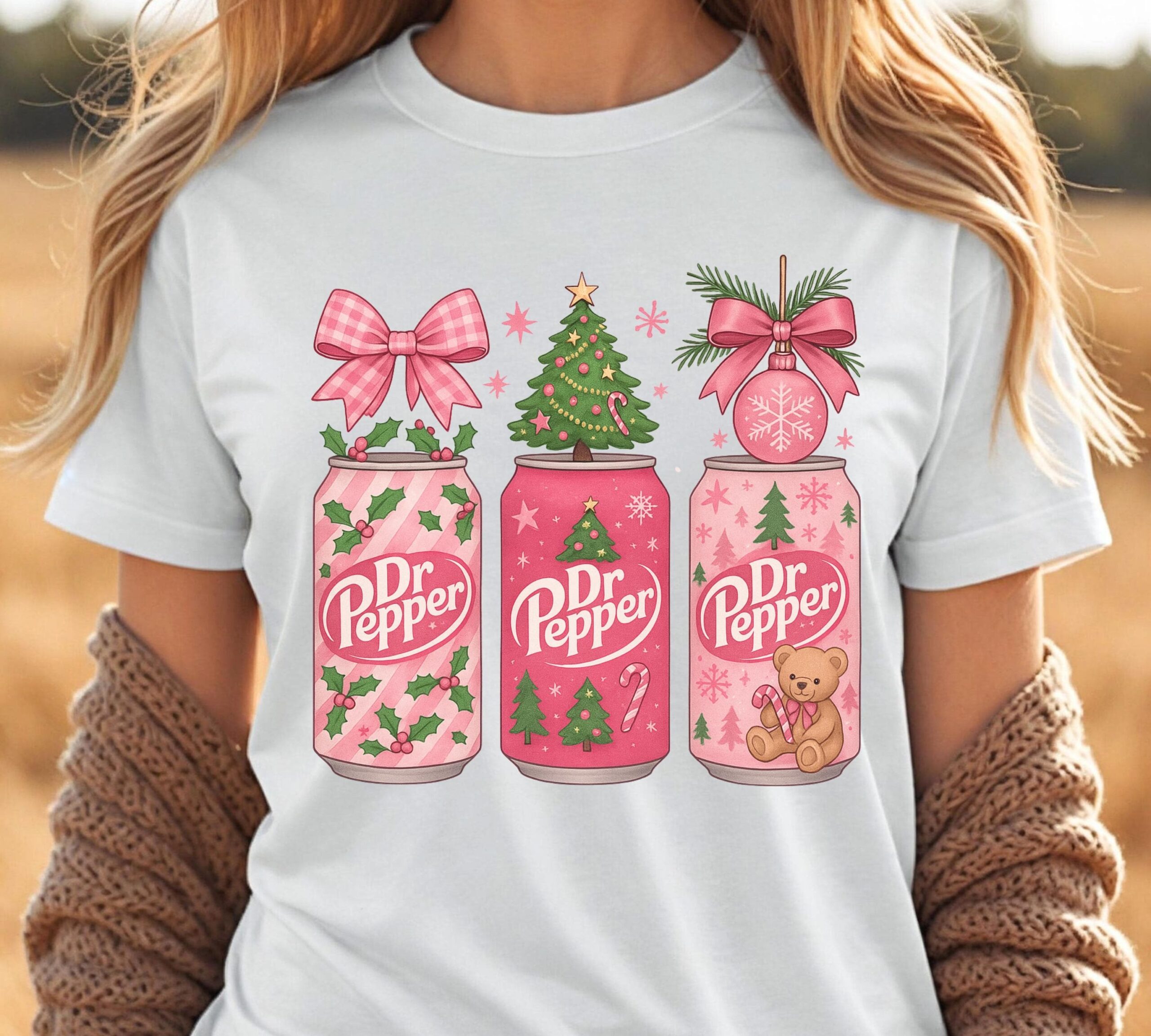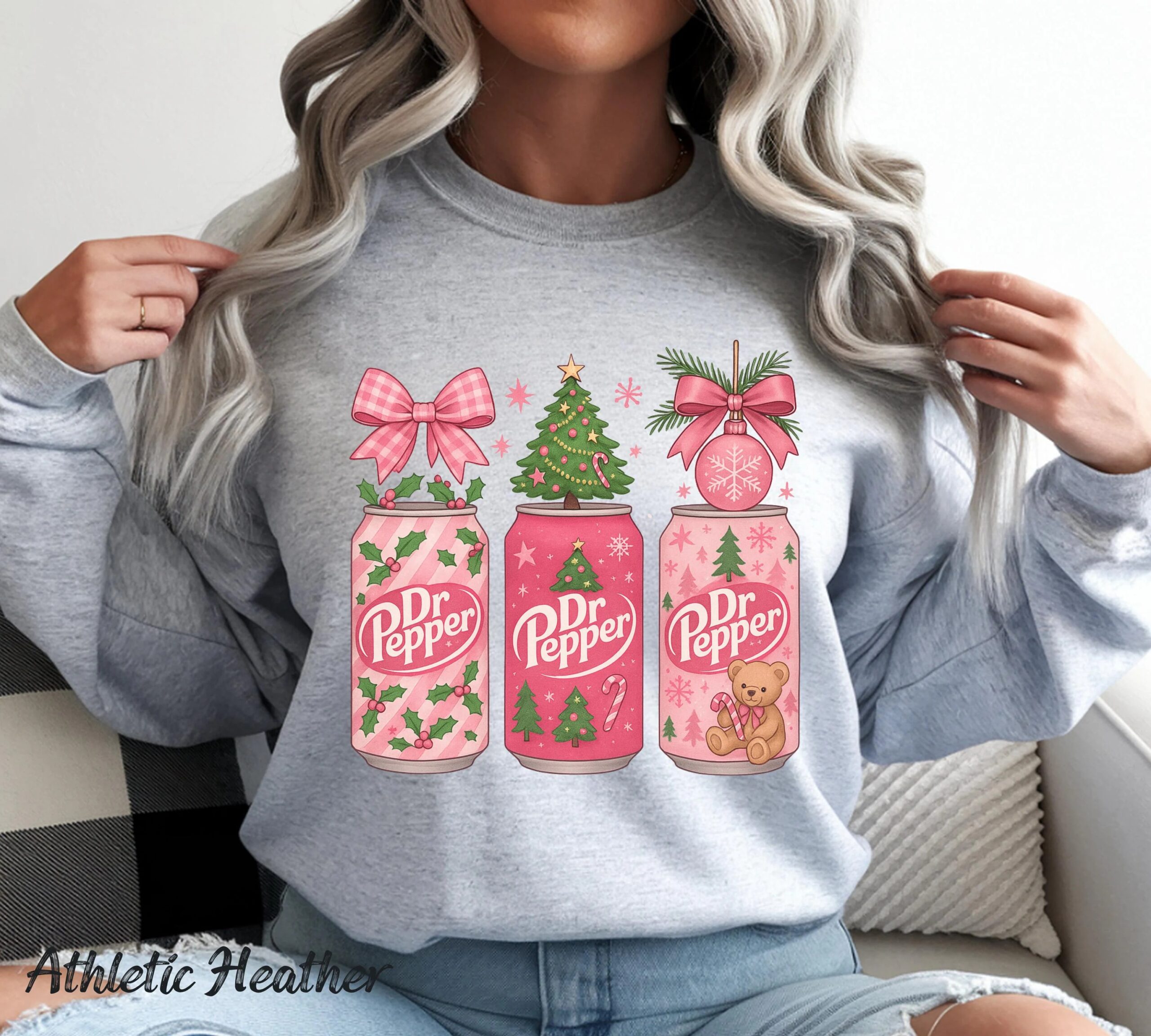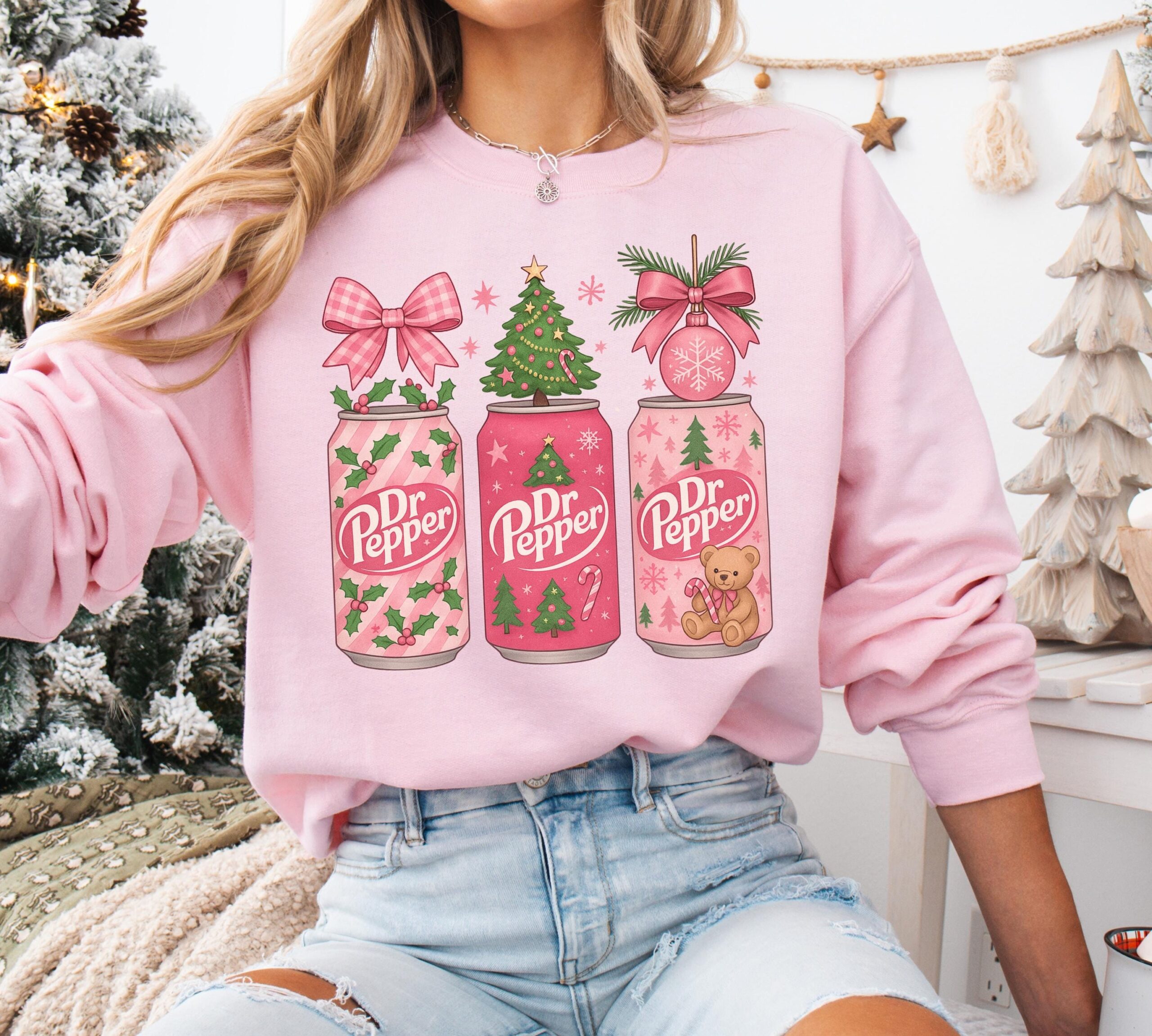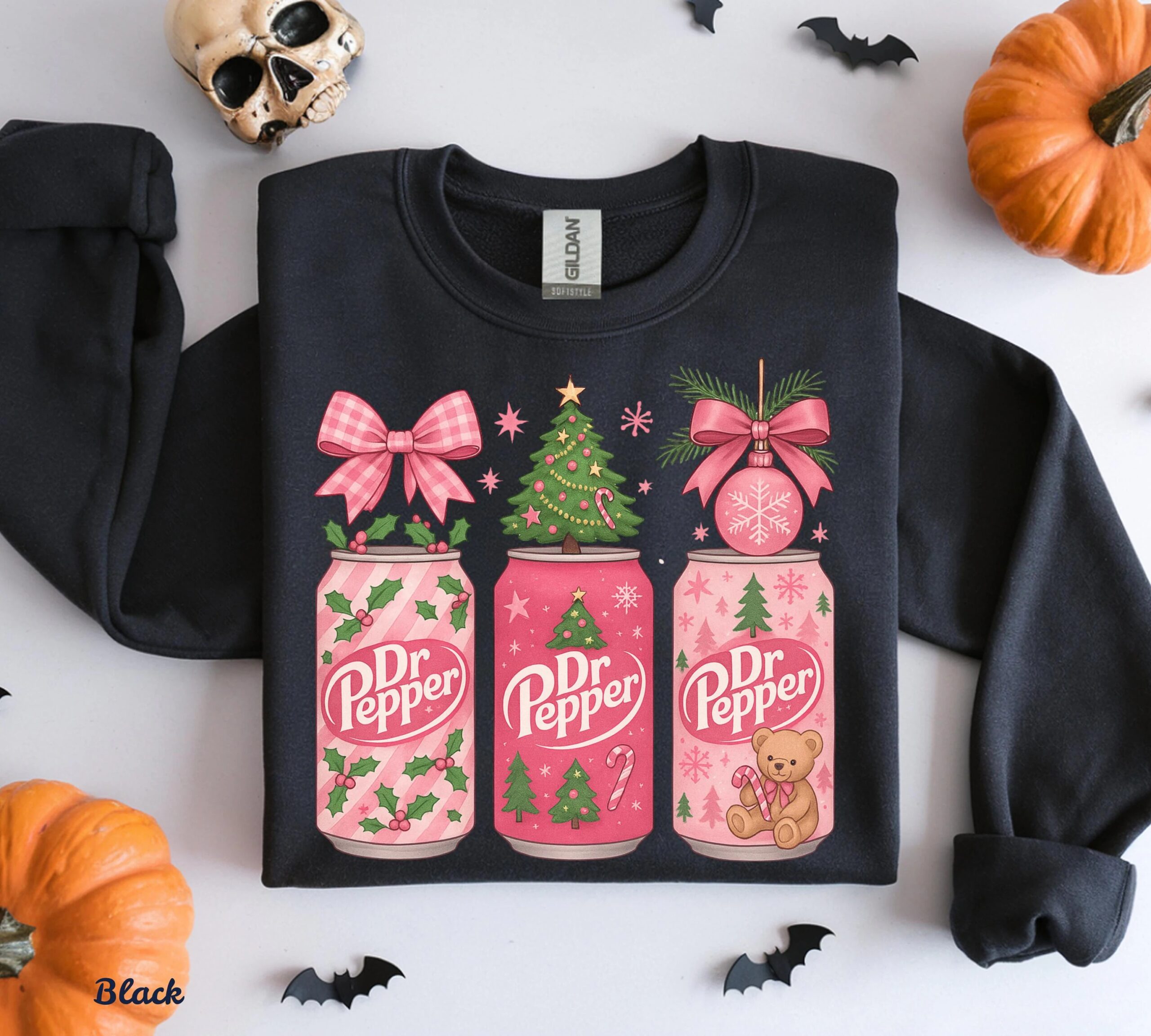 Christmas Dr Pepper Sweatshirt, Pink Bow Festive Holiday Tee