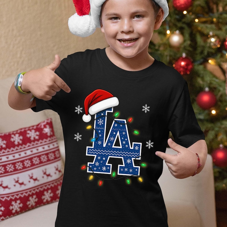 Christmas Light Blub LA Baseball Champs Shirt, Adult and Youth Xmas Shirt, World Series 2025 Shirts, Baseball Christmas Tee, Family Xmas