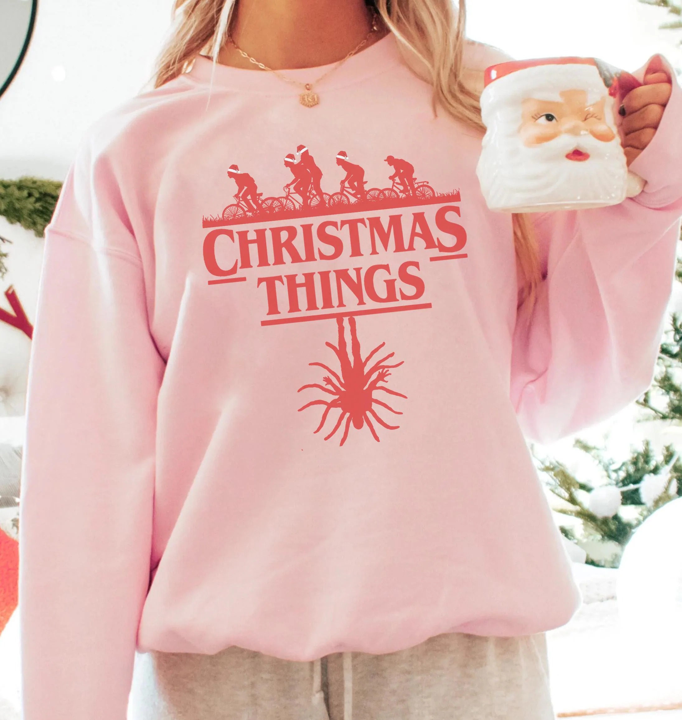 Christmas Things Sweatshirt, Stranger Christmas Shirt, Hawkins Indiana Hoodie, Xmas Gift Crewneck T-Shirt, 80s TV Show Fan Gift