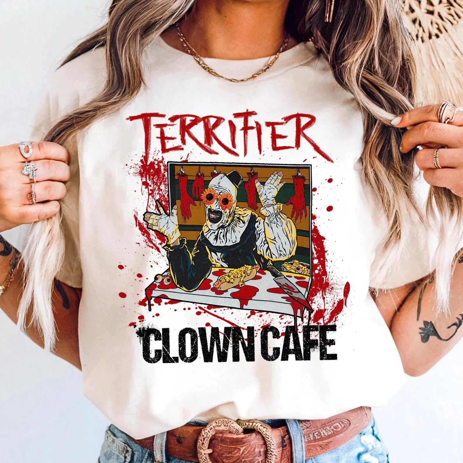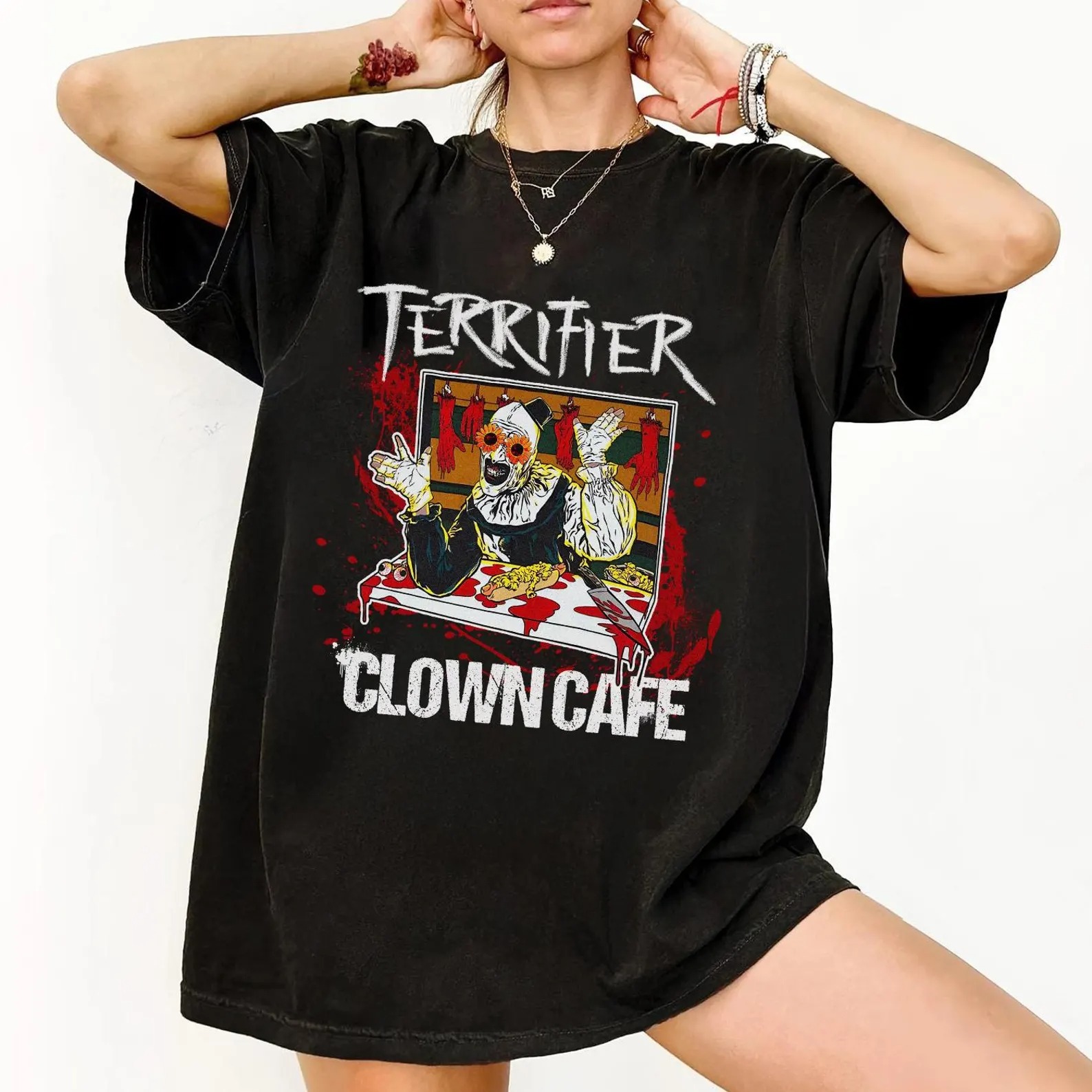 Clown Cafe Horror Tshirt, Creepy Circus Graphic Tee, Scary Clown Halloween Top, Terrifier T-Shirt, Halloween Shirt, Gift For Her And Him