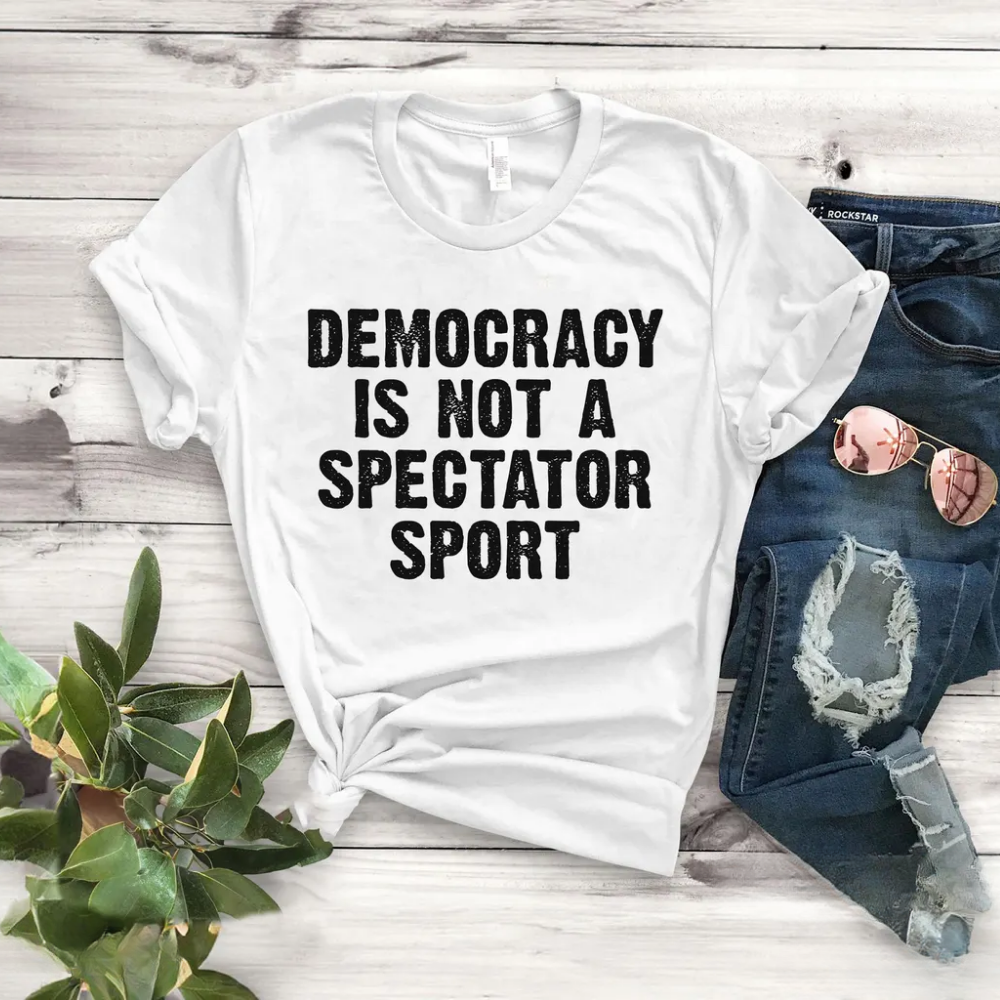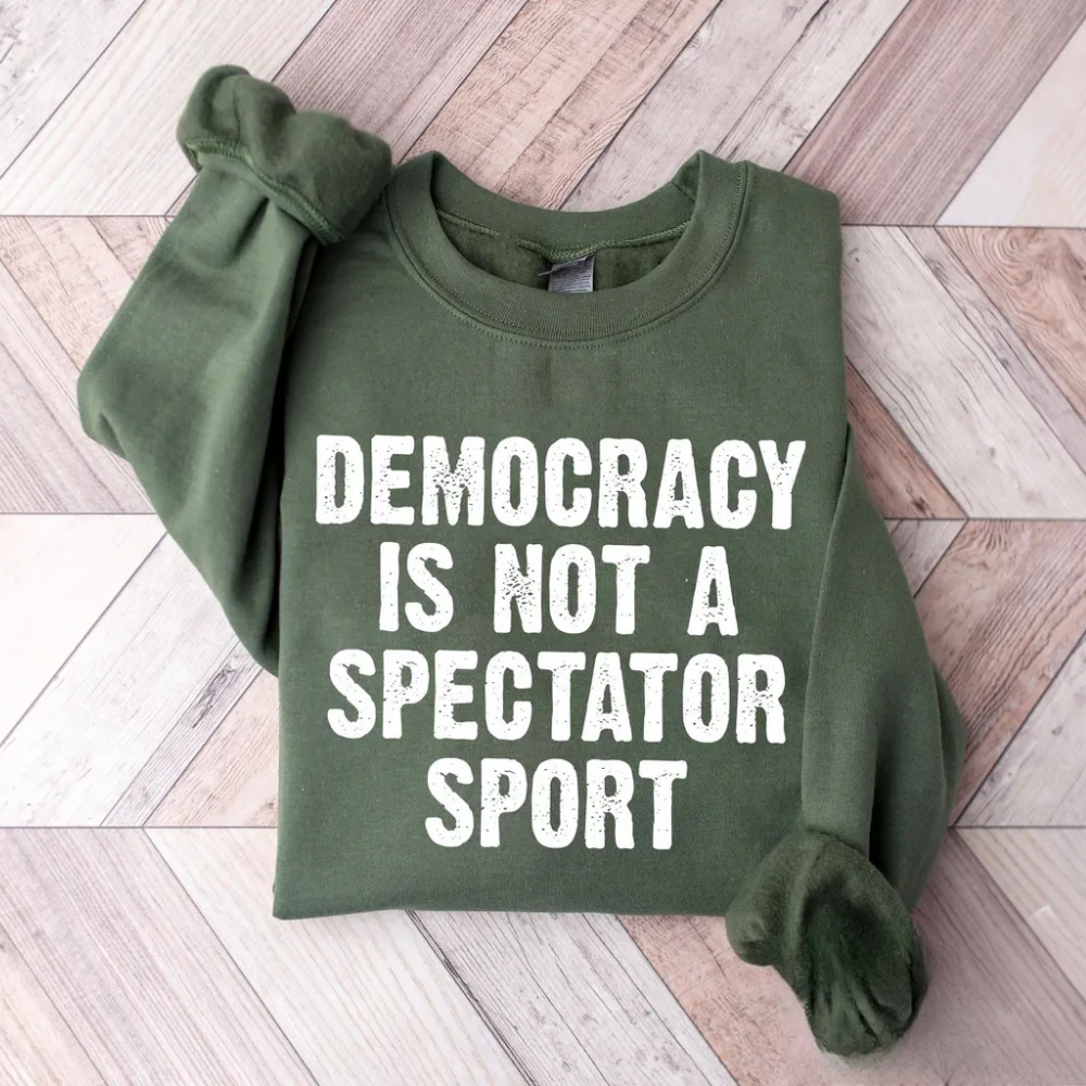 Democracy Is Not a Spectator Sweatshirt, USA Graphic Political Unisex Tee